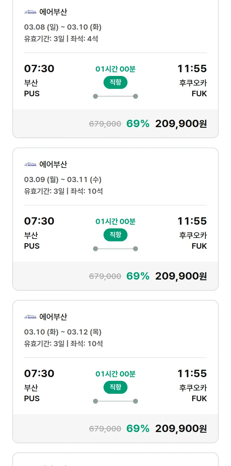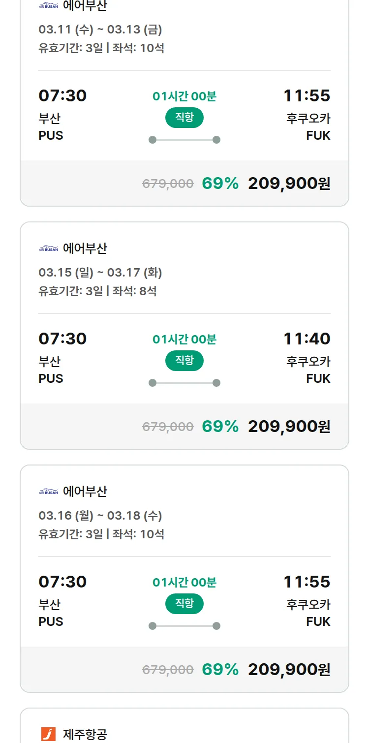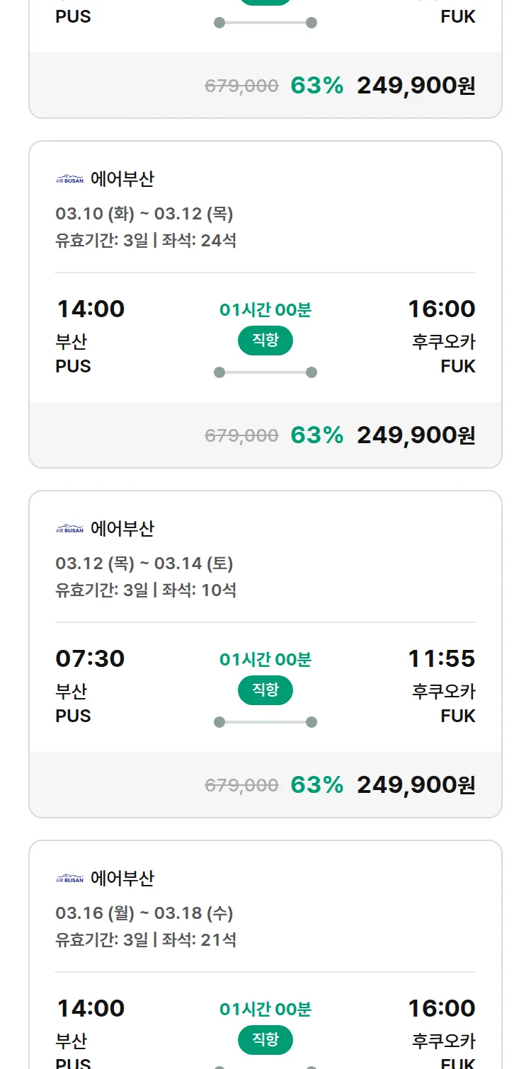 (2월 12일(목)) 땡처리 특가 항공권