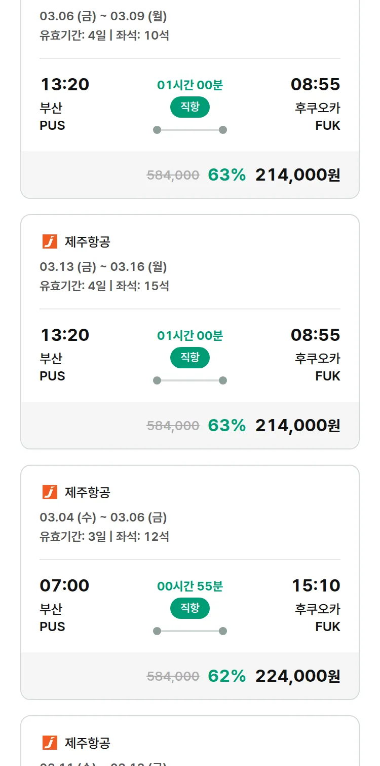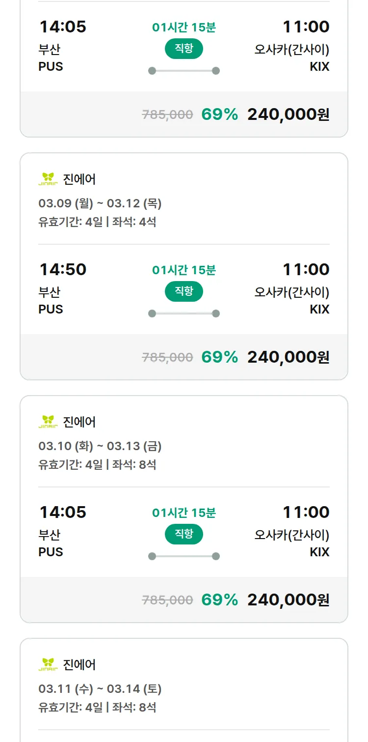 (2월 13일(금)) 모두투어 일본 특가 항공권