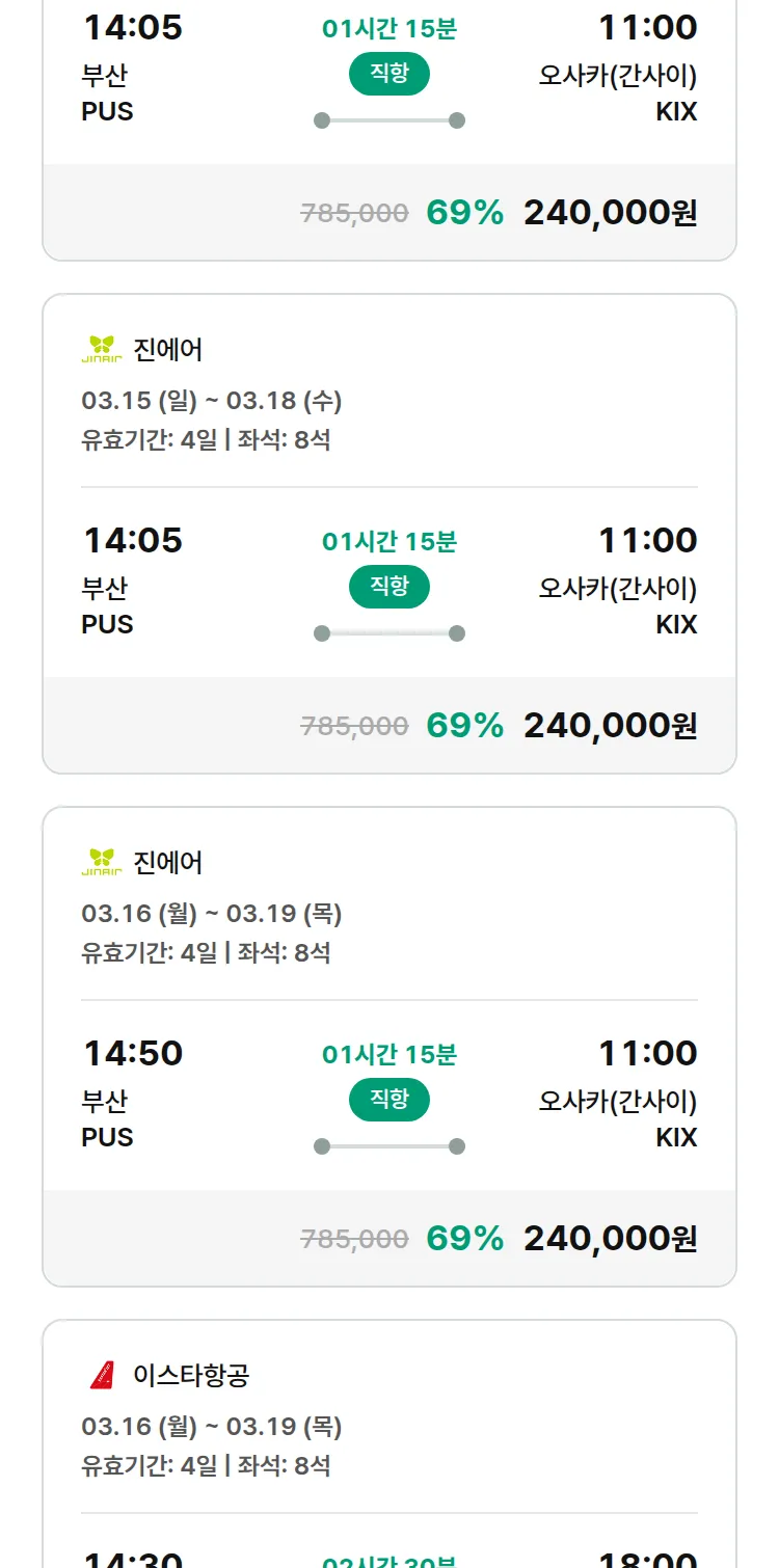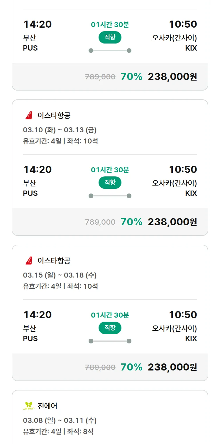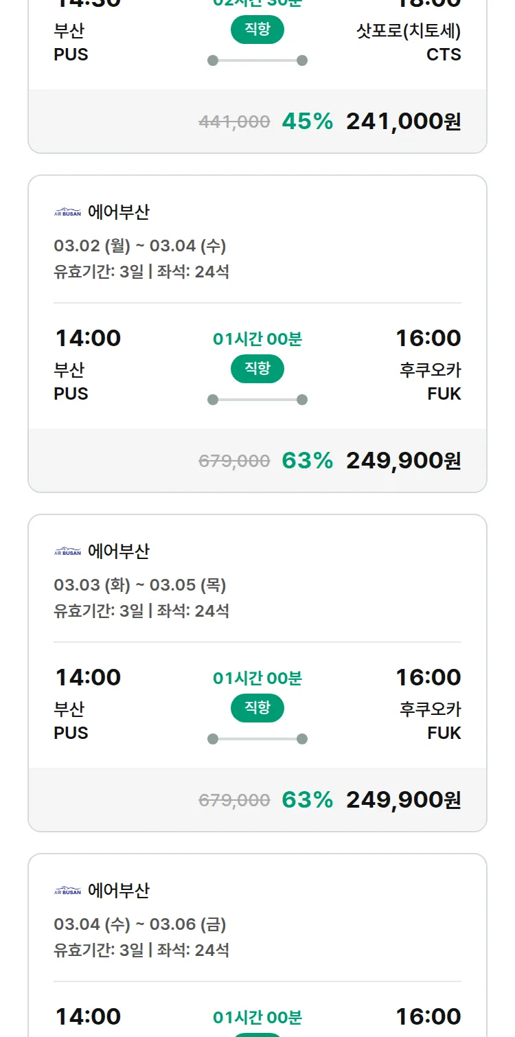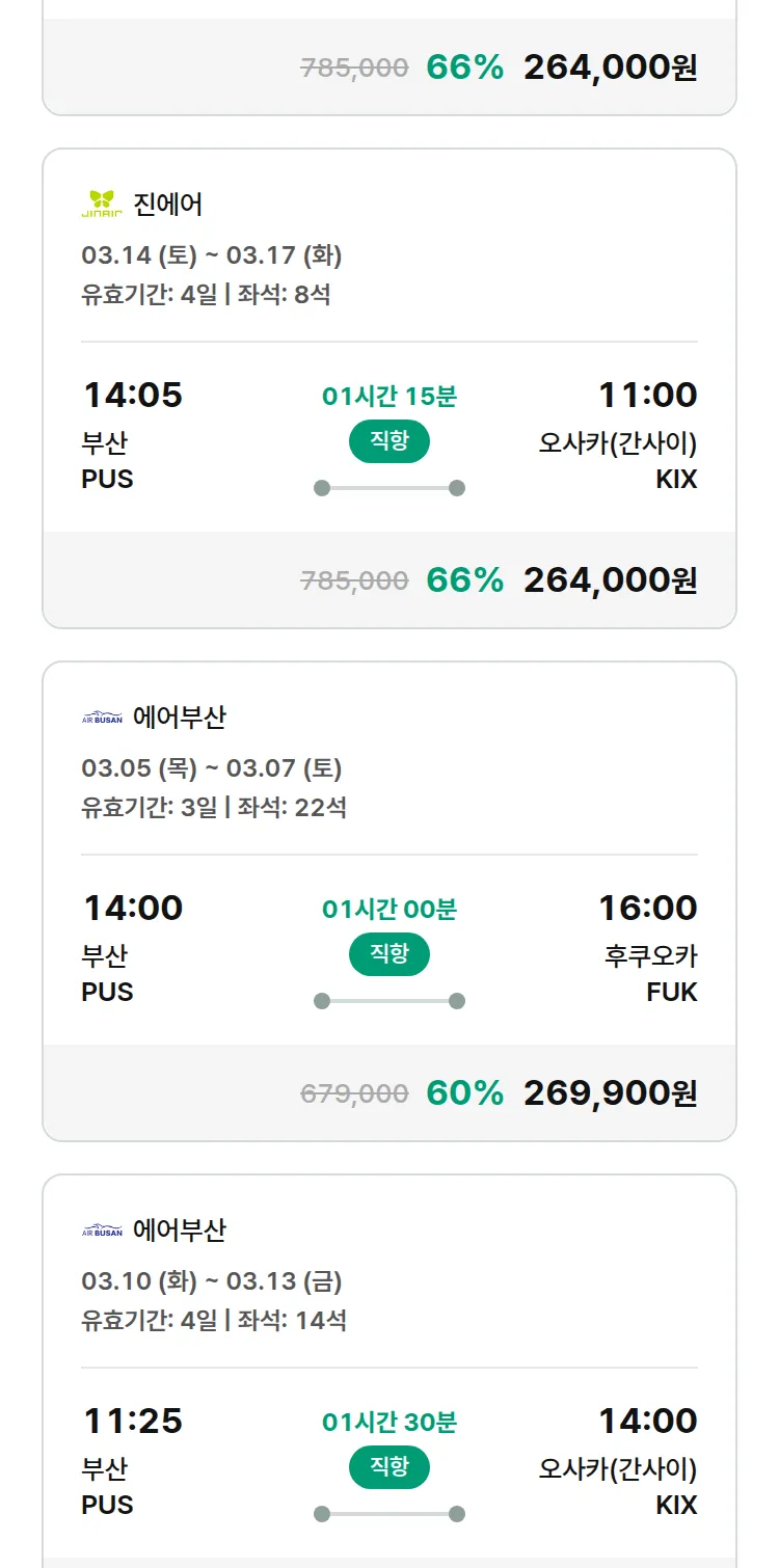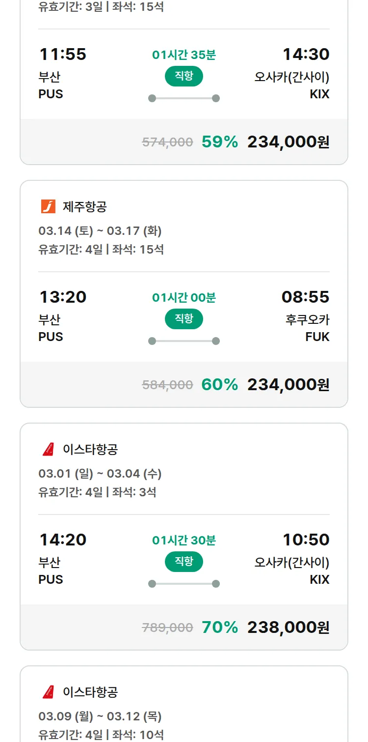 (2월 14일(토)) 땡처리 특가 항공권