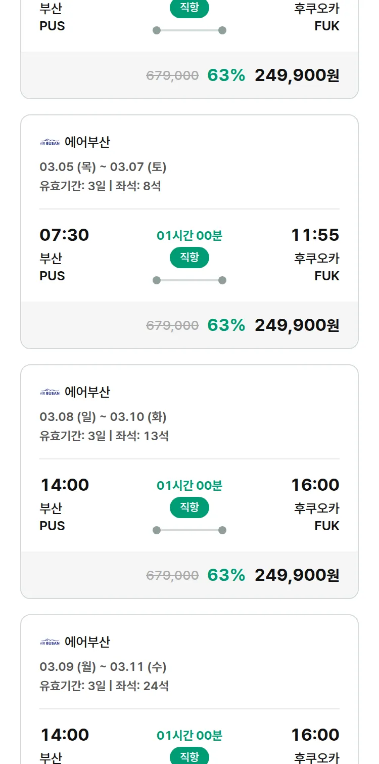 (2월 13일(금)) 땡처리 특가 항공권