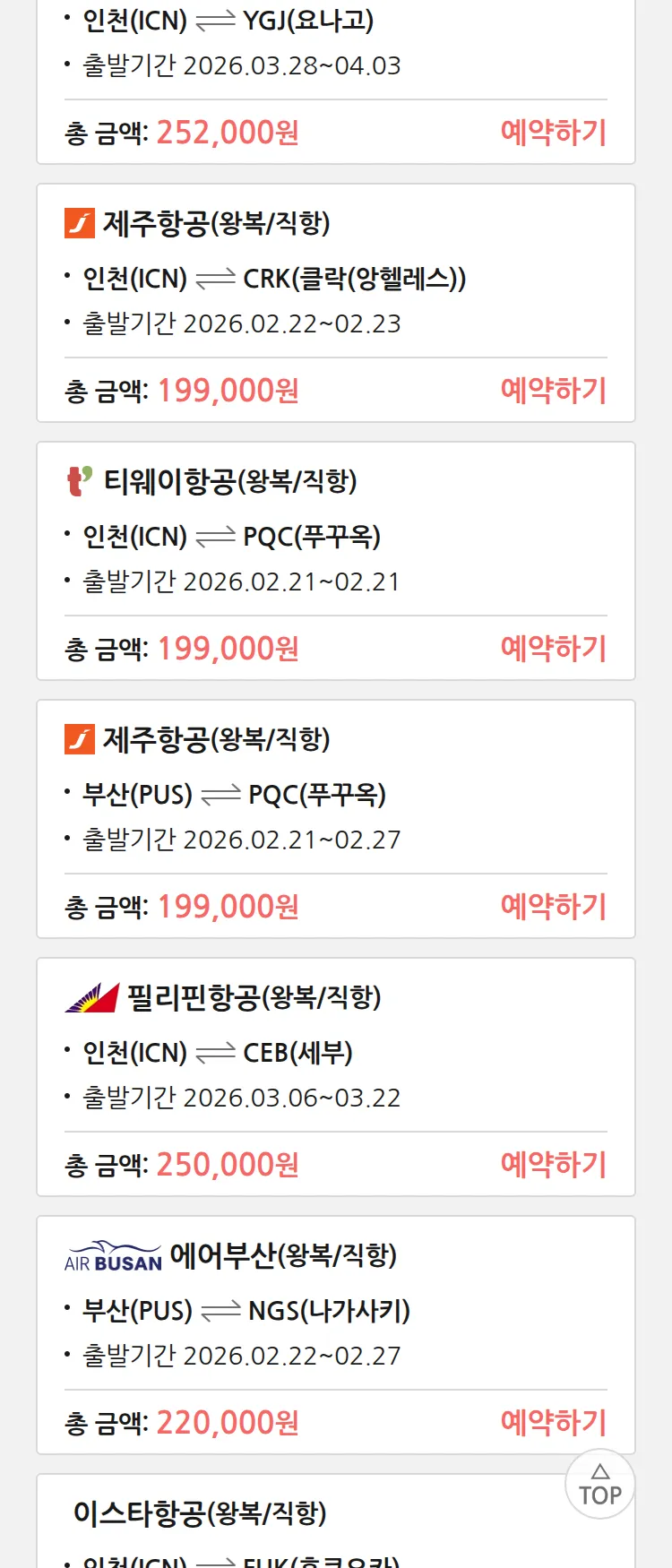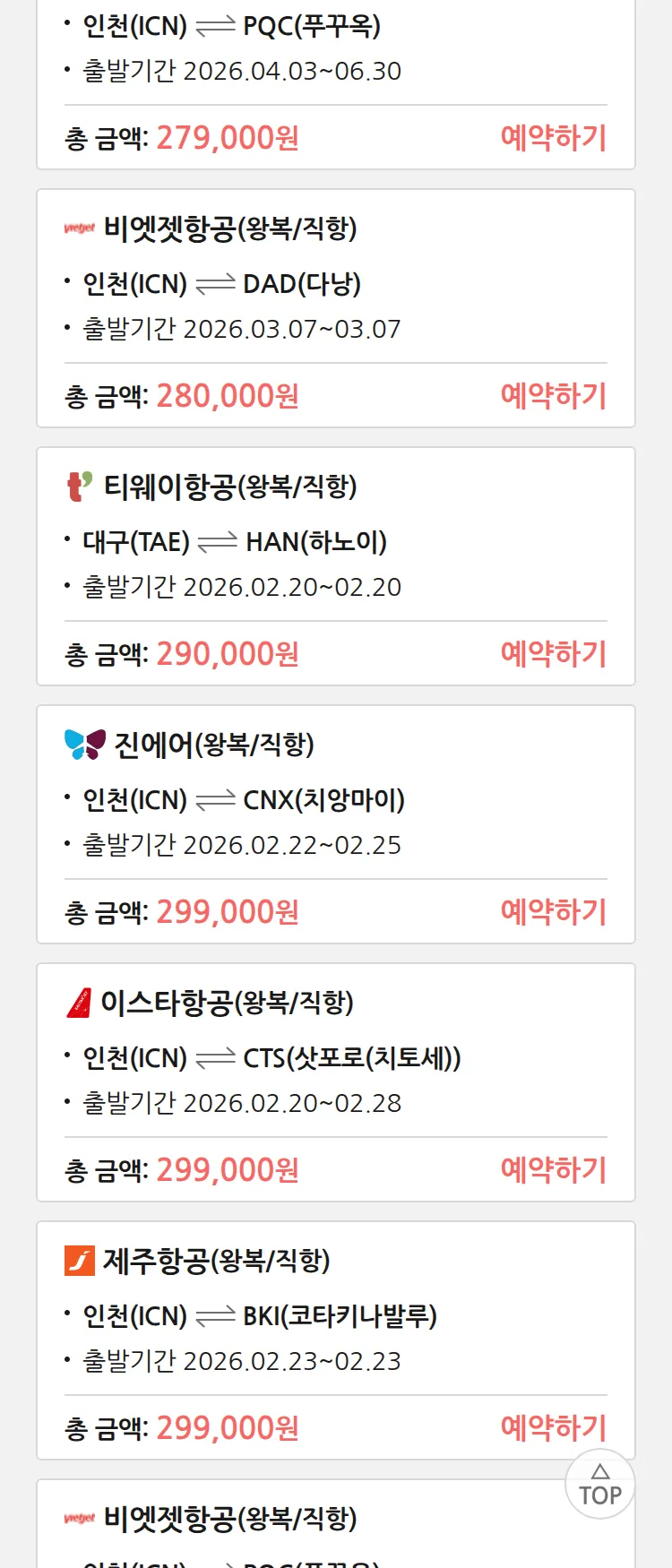 (2월 14일(토)) 땡처리 99.9% 확정 패키지