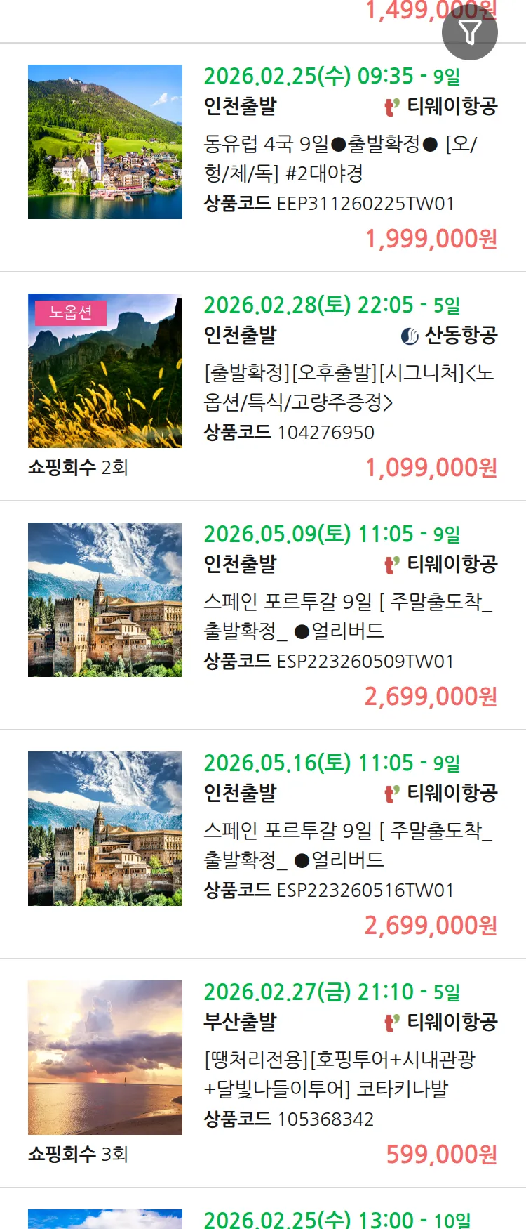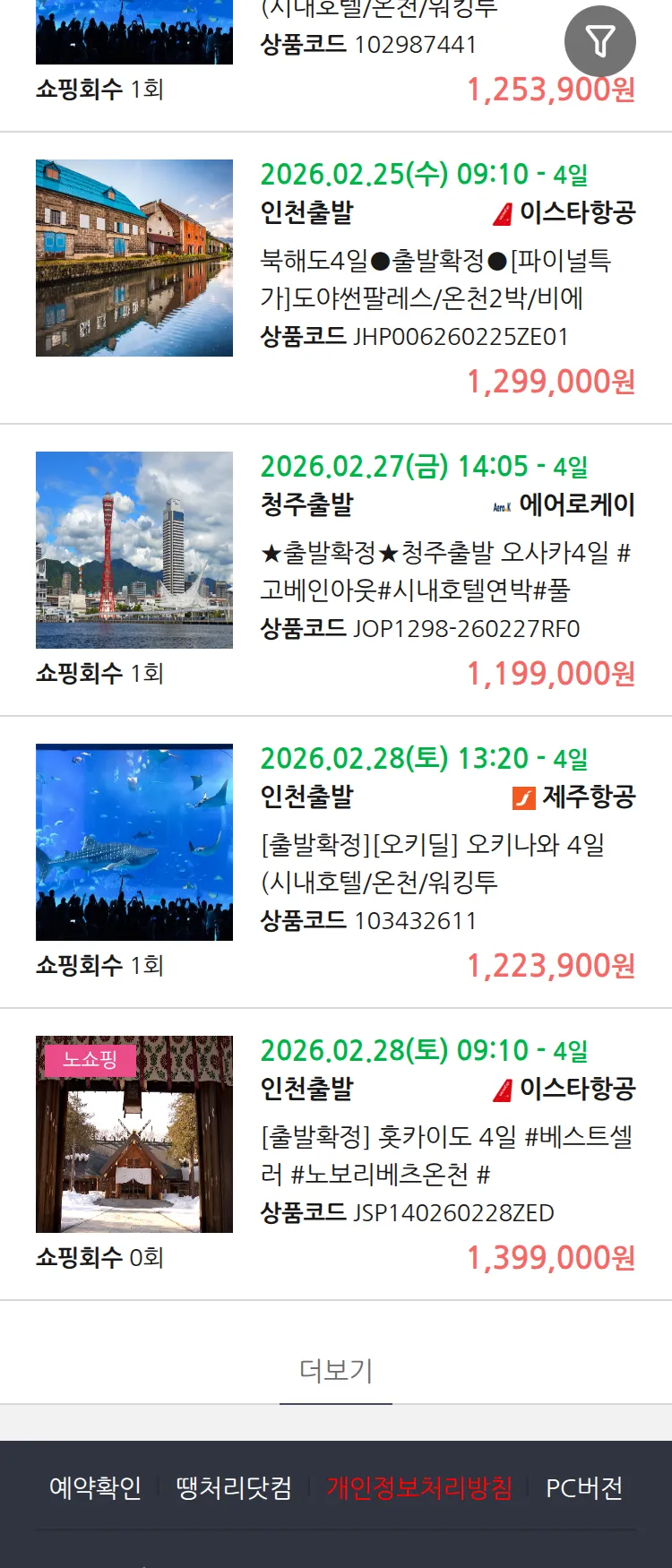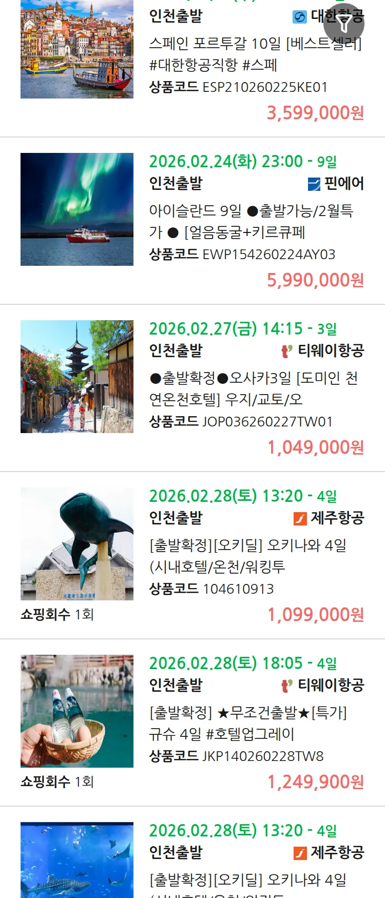 (2월 16일(월)) 땡처리 99.9% 확정 패키지