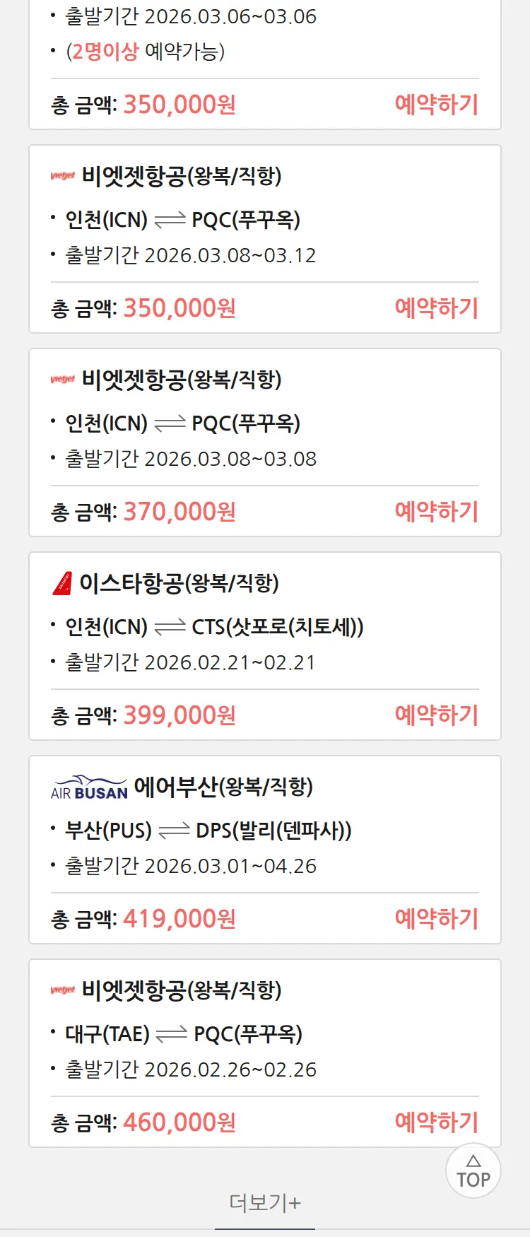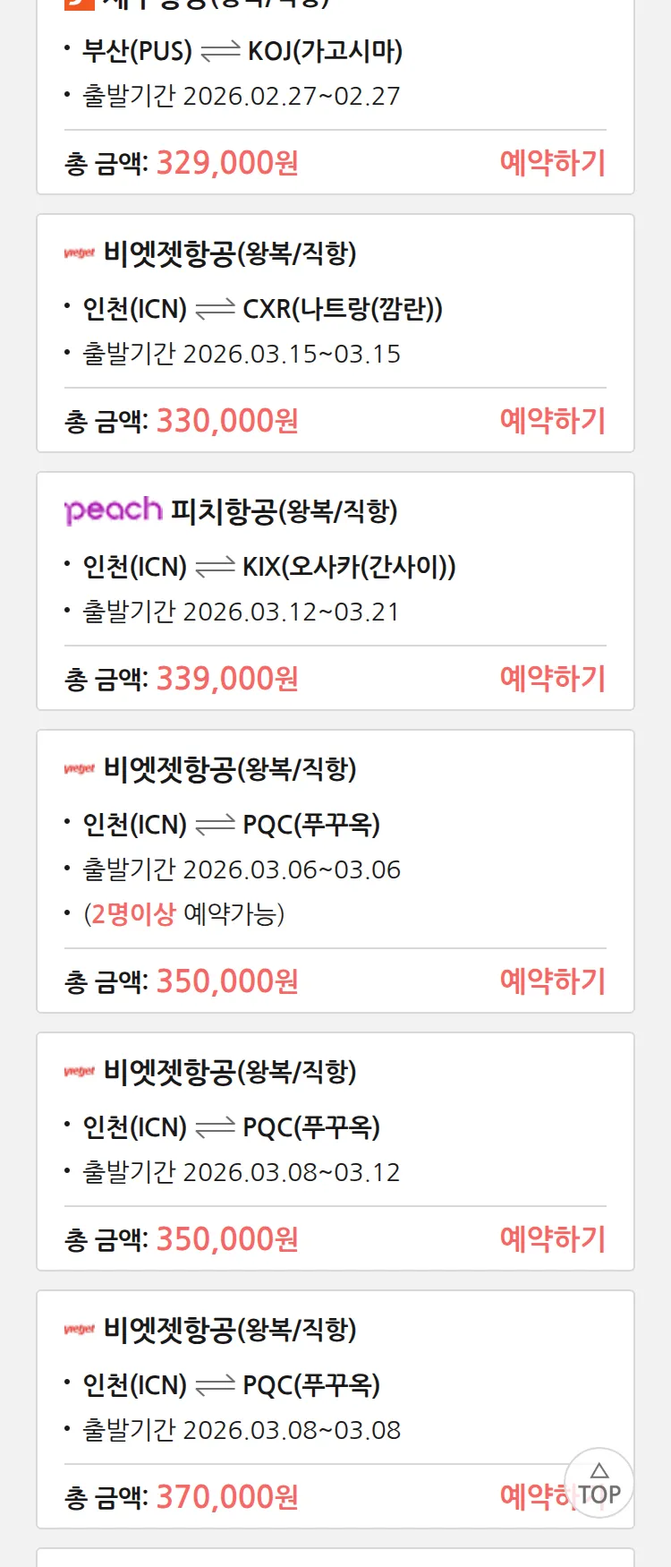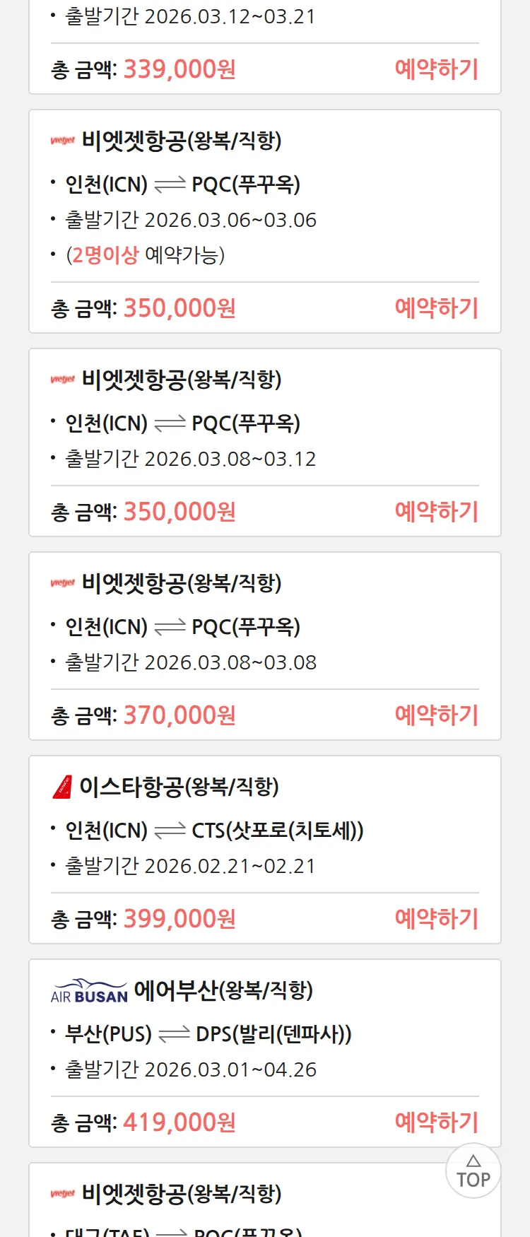 (2월 17일(화)) 땡처리 특가 항공권