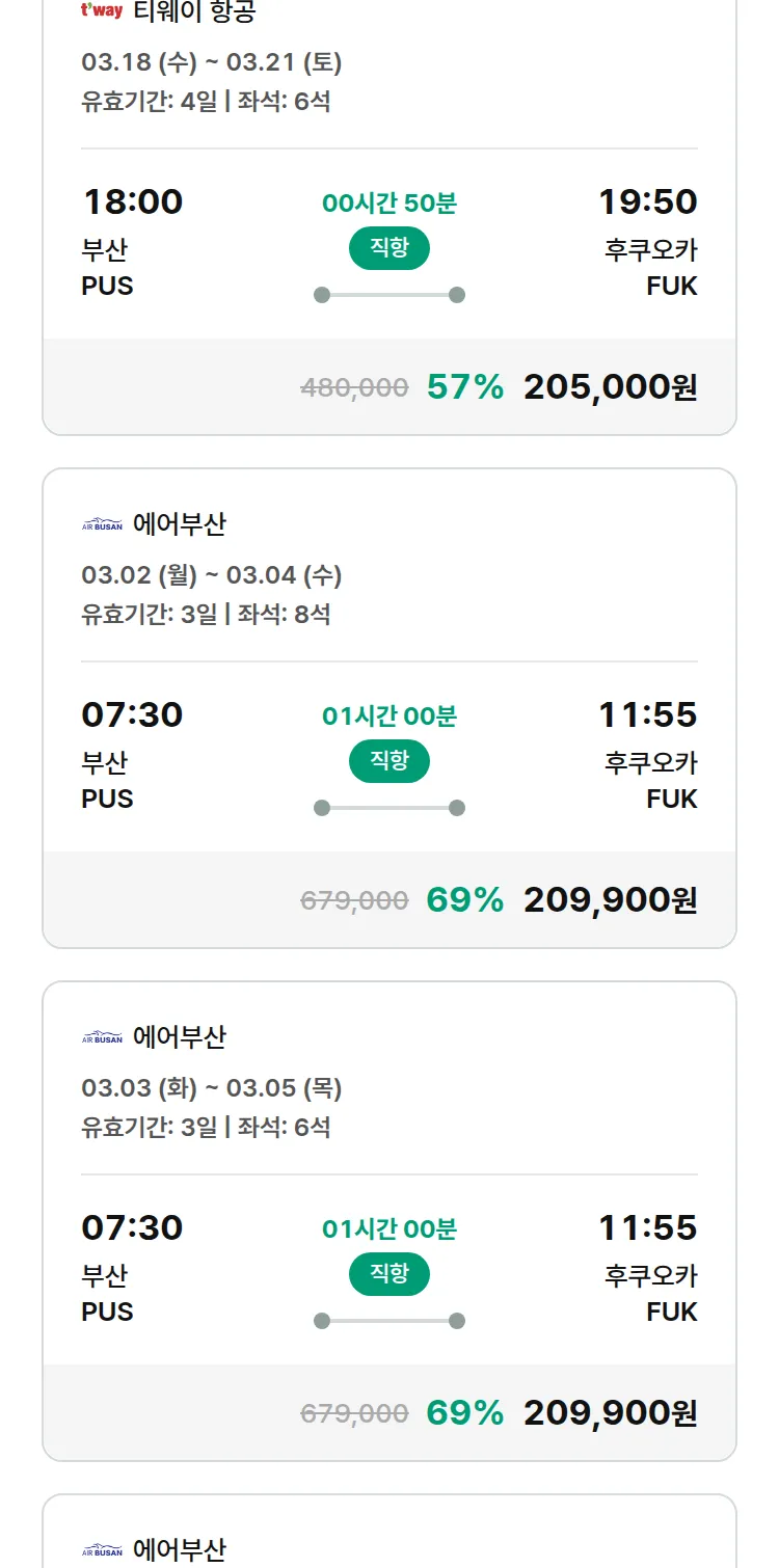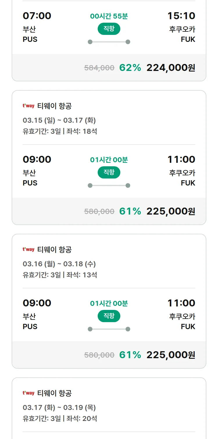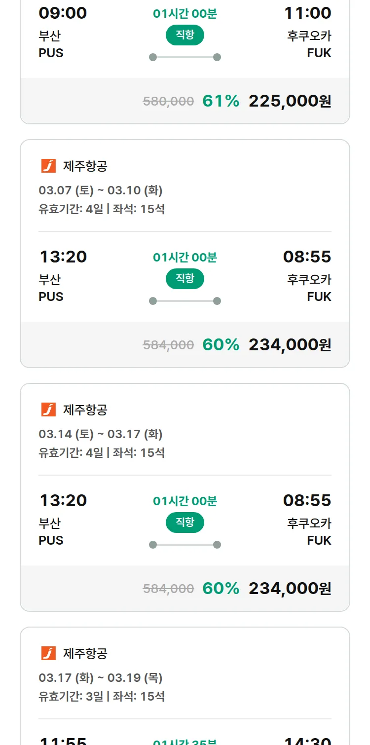 (2월 15일(일)) 땡처리 특가 항공권