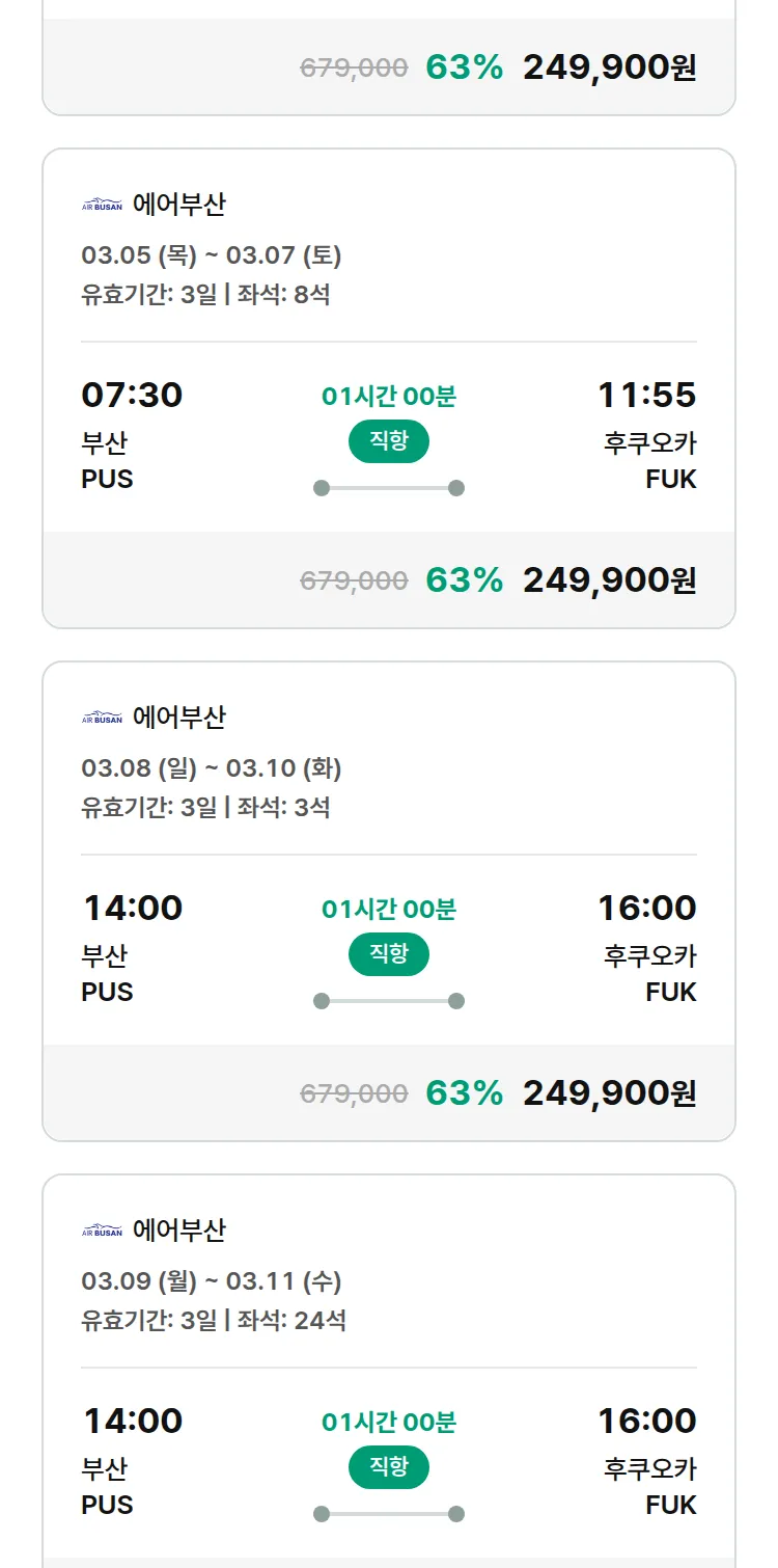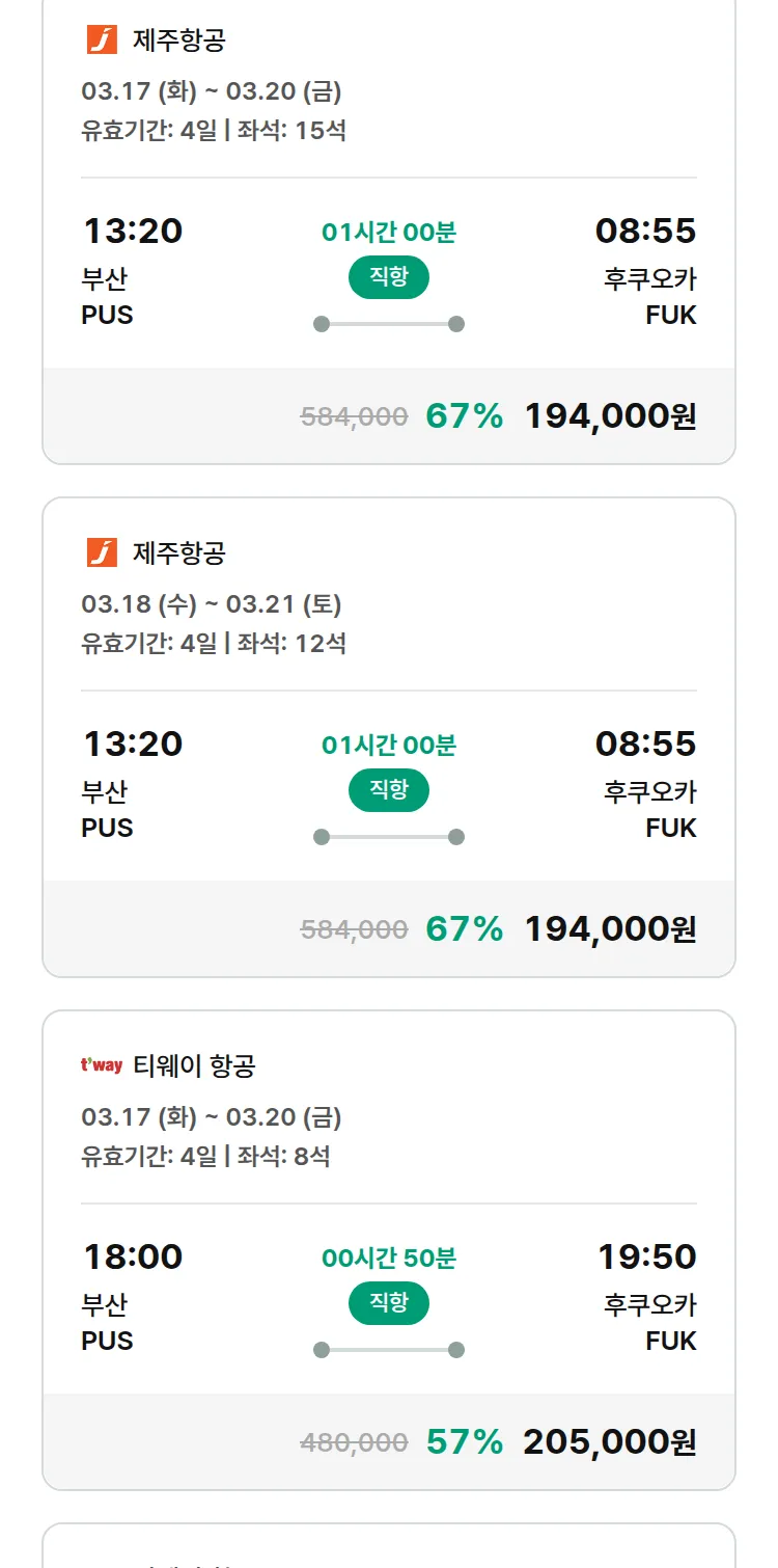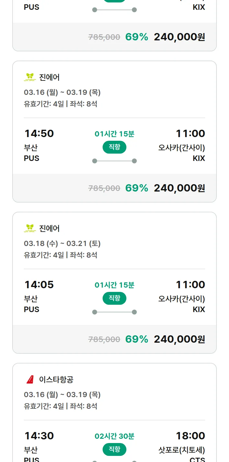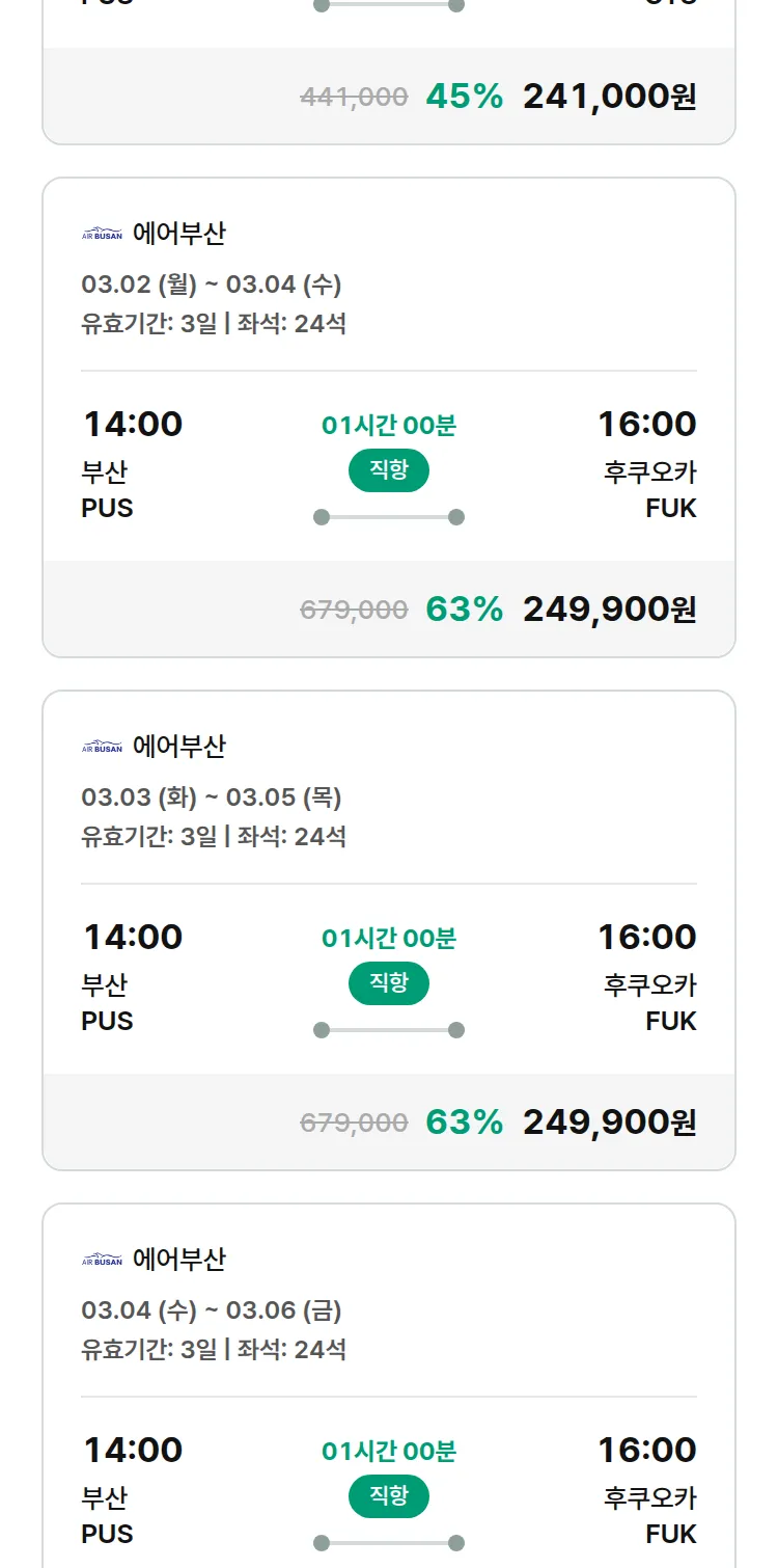 (2월 15일(일)) 땡처리 특가 항공권