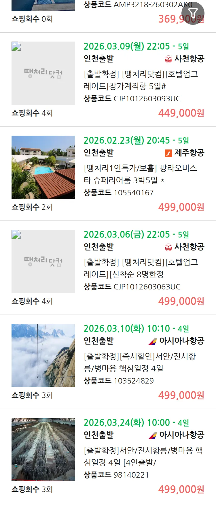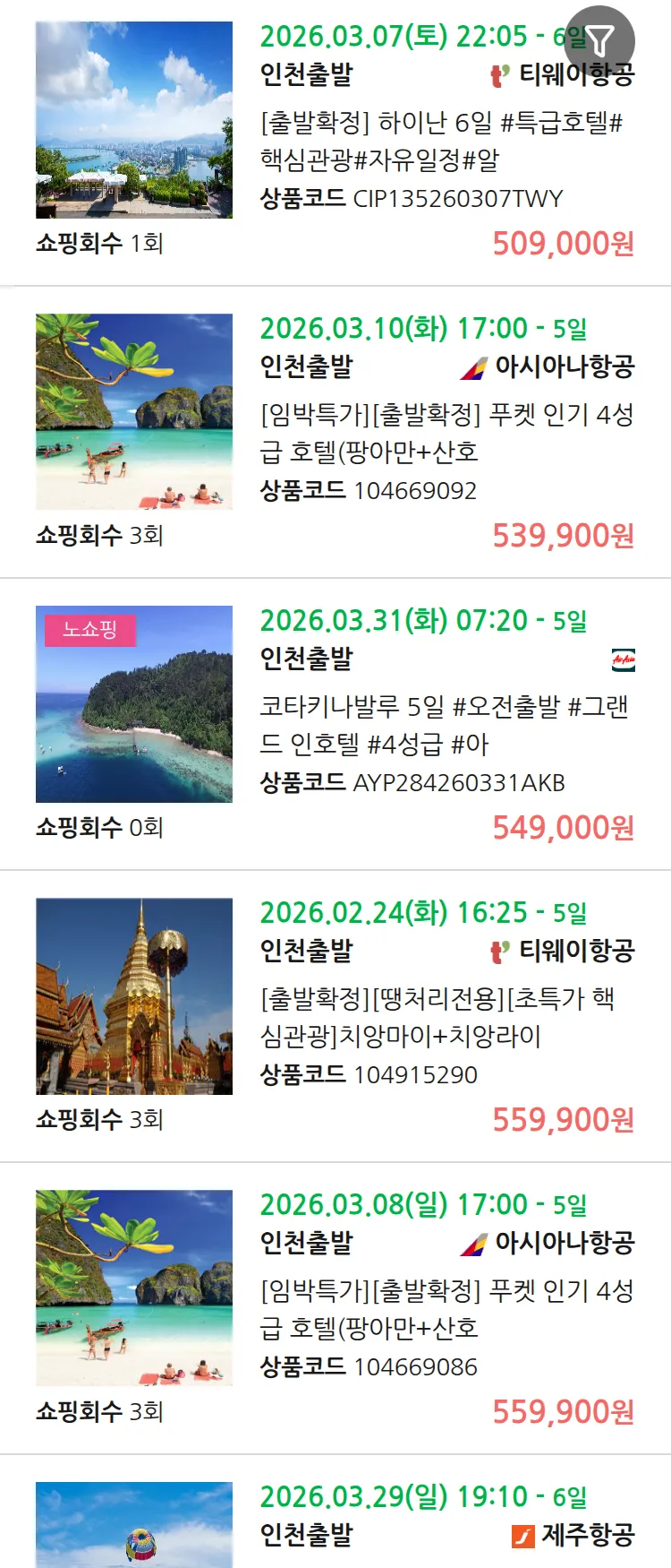 (2월 16일(월)) 땡처리 99.9% 확정 패키지