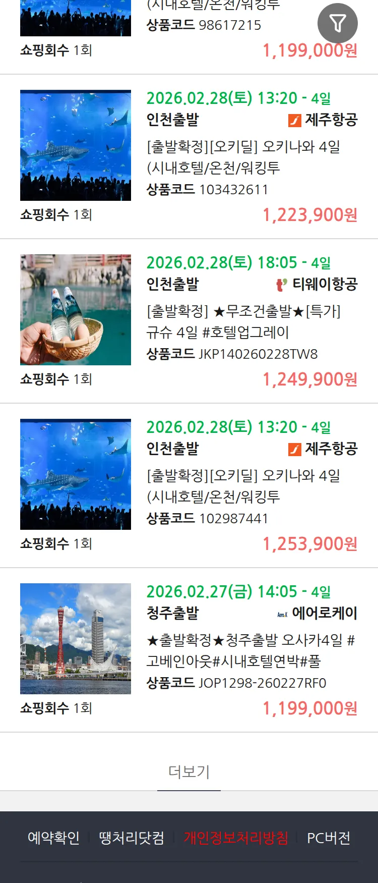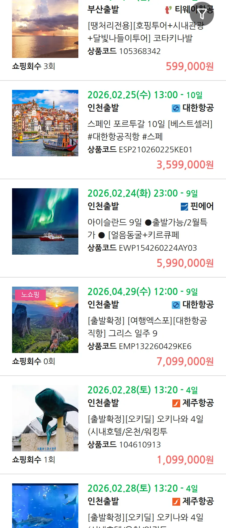 (2월 16일(월)) 땡처리 99.9% 확정 패키지