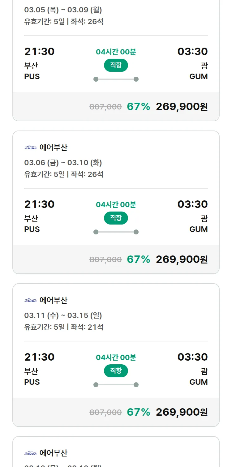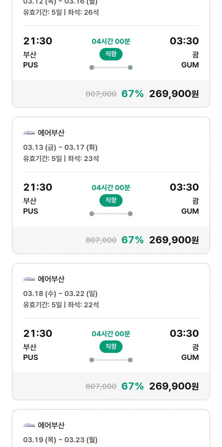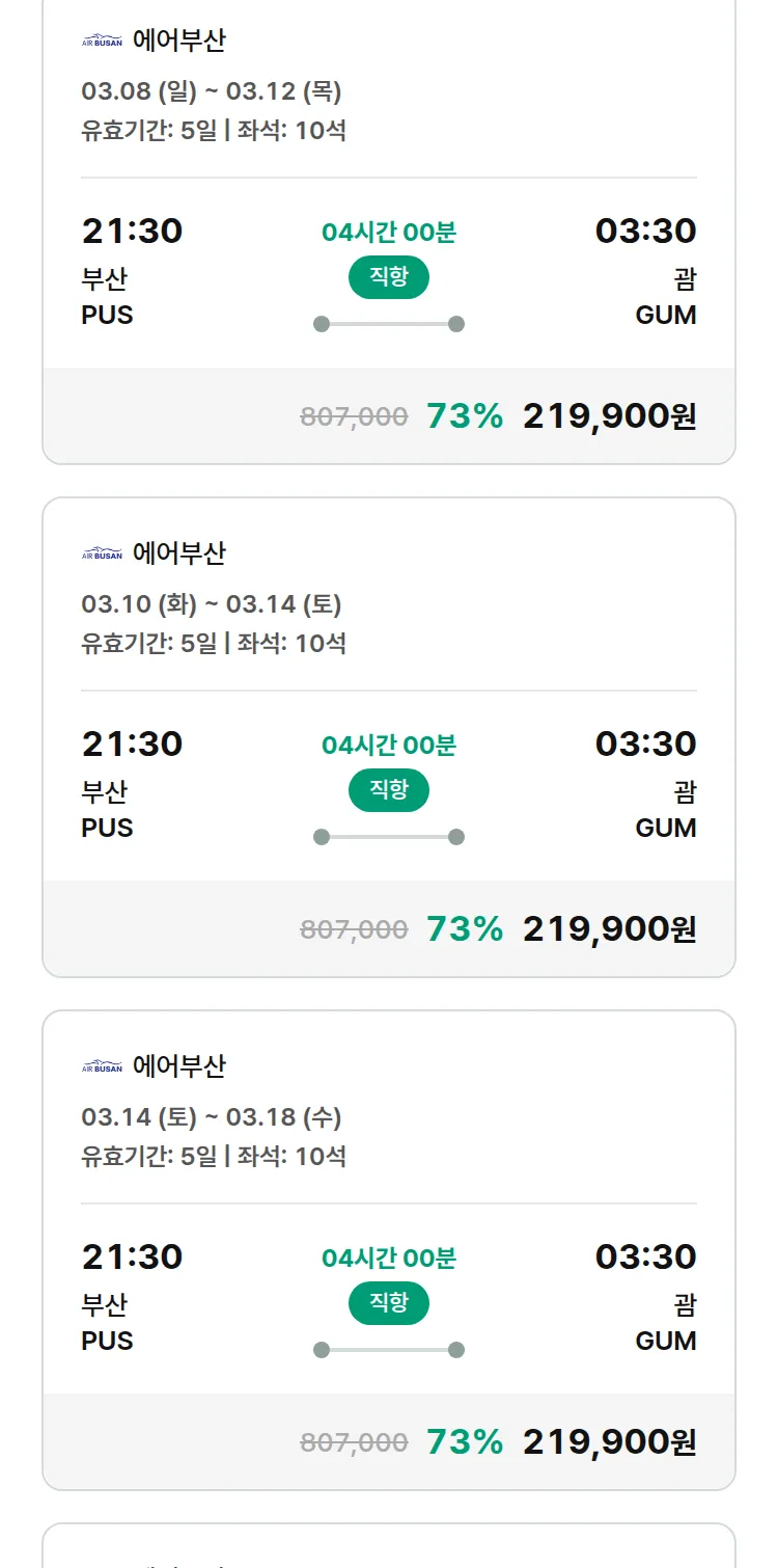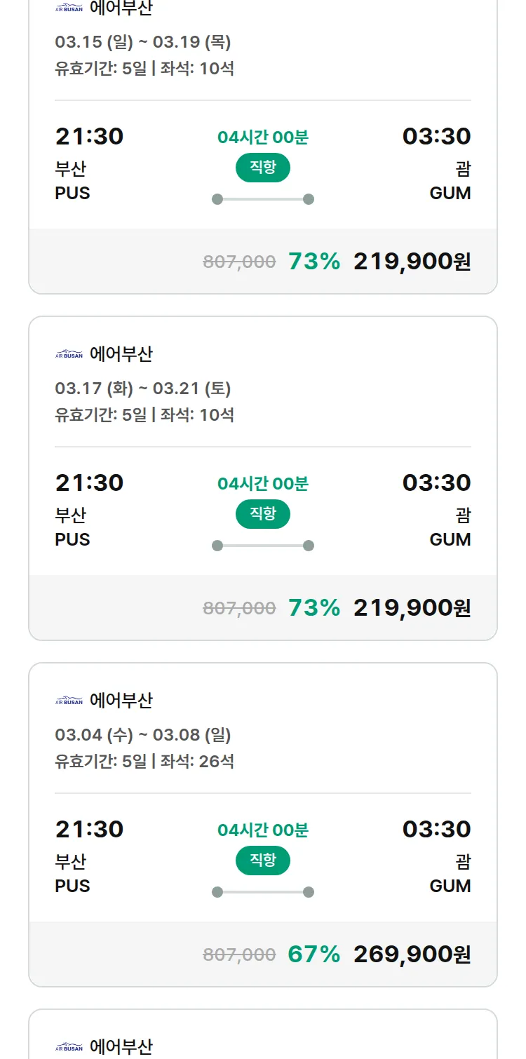 (2월 17일(화)) 땡처리 특가 항공권