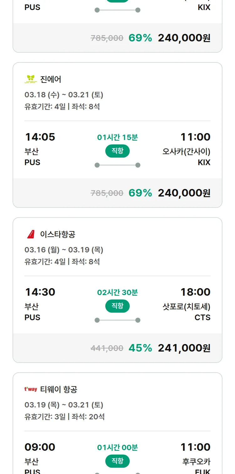 (2월 16일(월)) 모두투어 일본 특가 항공권