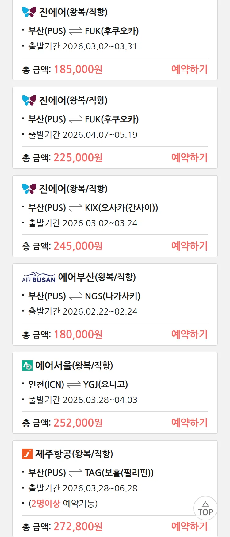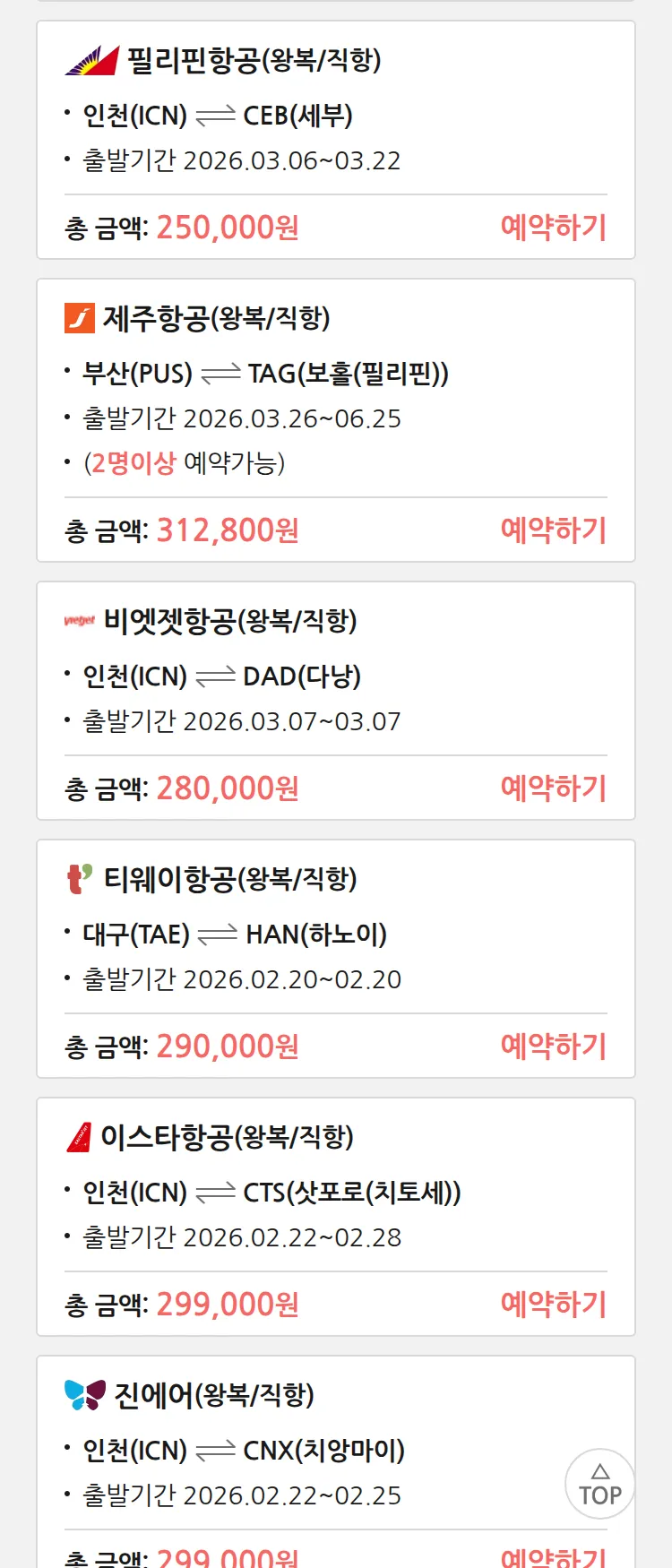 (2월 16일(월)) 땡처리 99.9% 확정 패키지