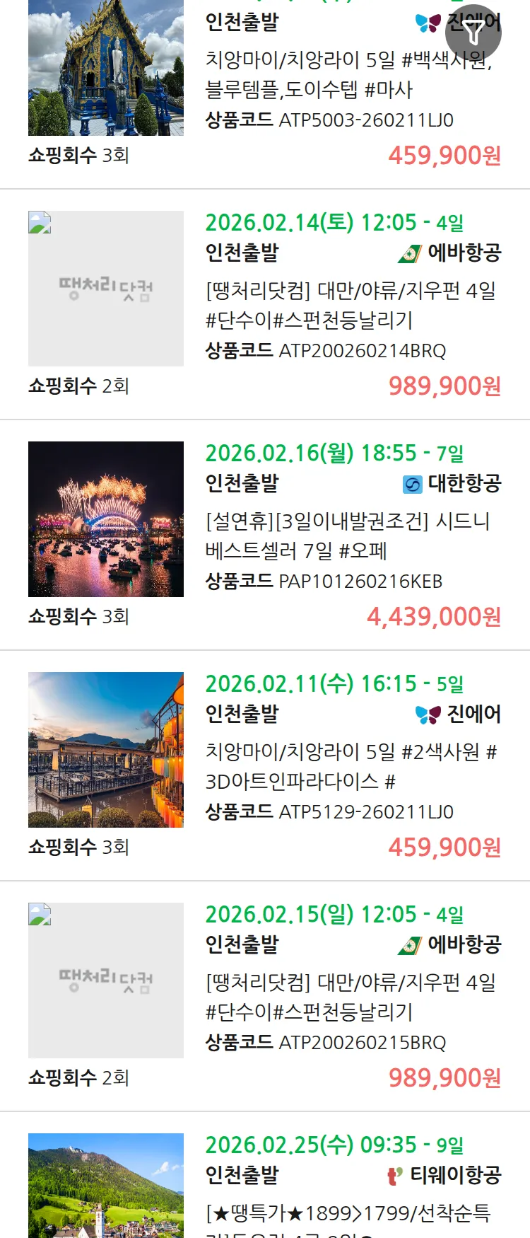 (2월1일(일)) 땡처리 99.9% 확정 패키지
