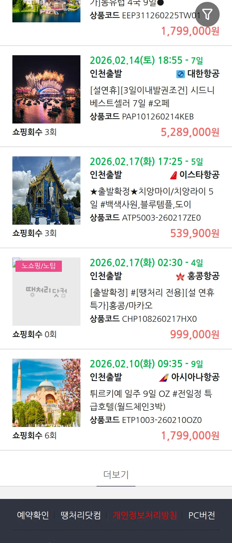 (2월1일(일)) 땡처리 연휴 패키지 패키지
