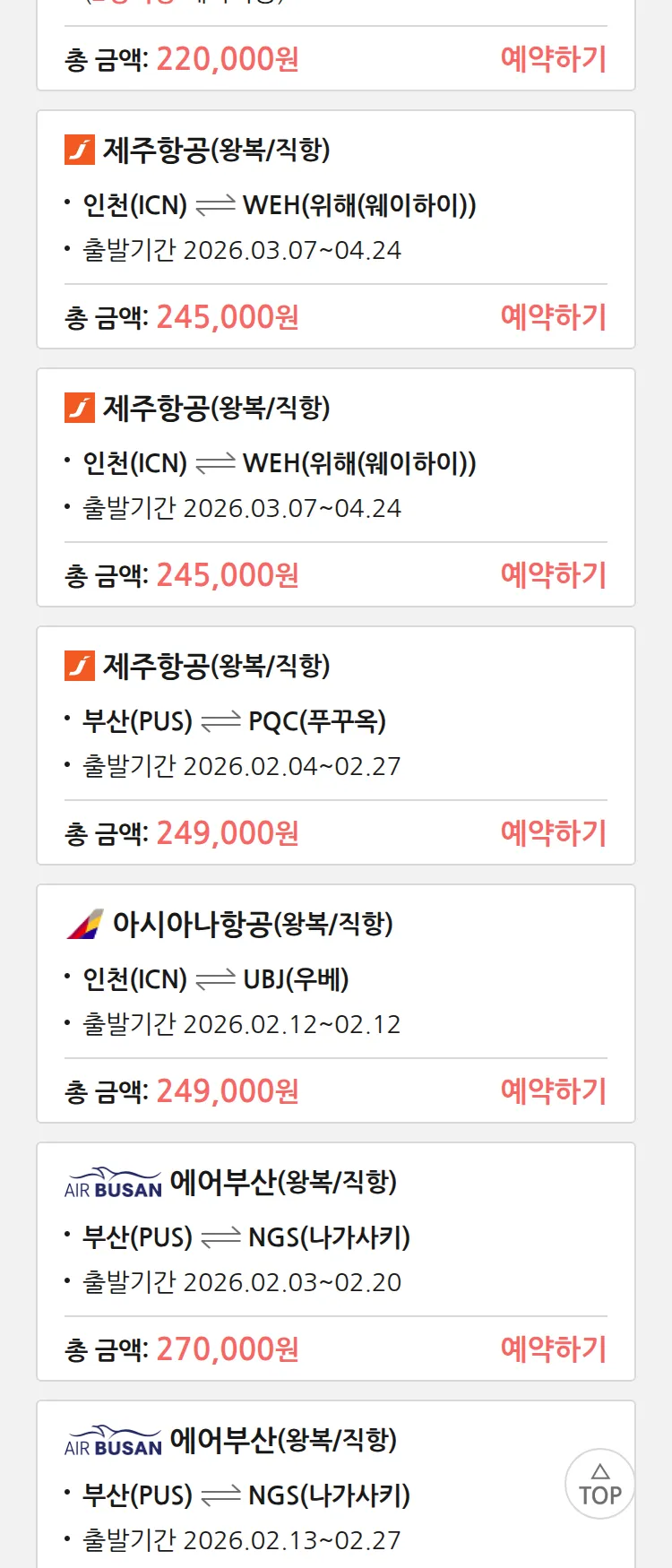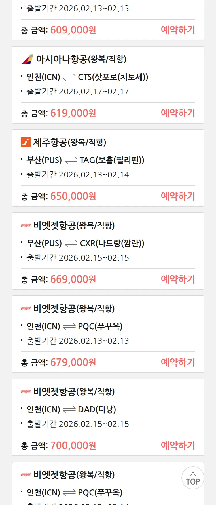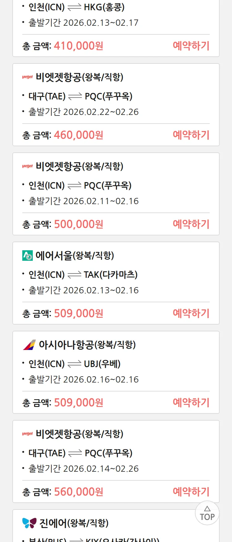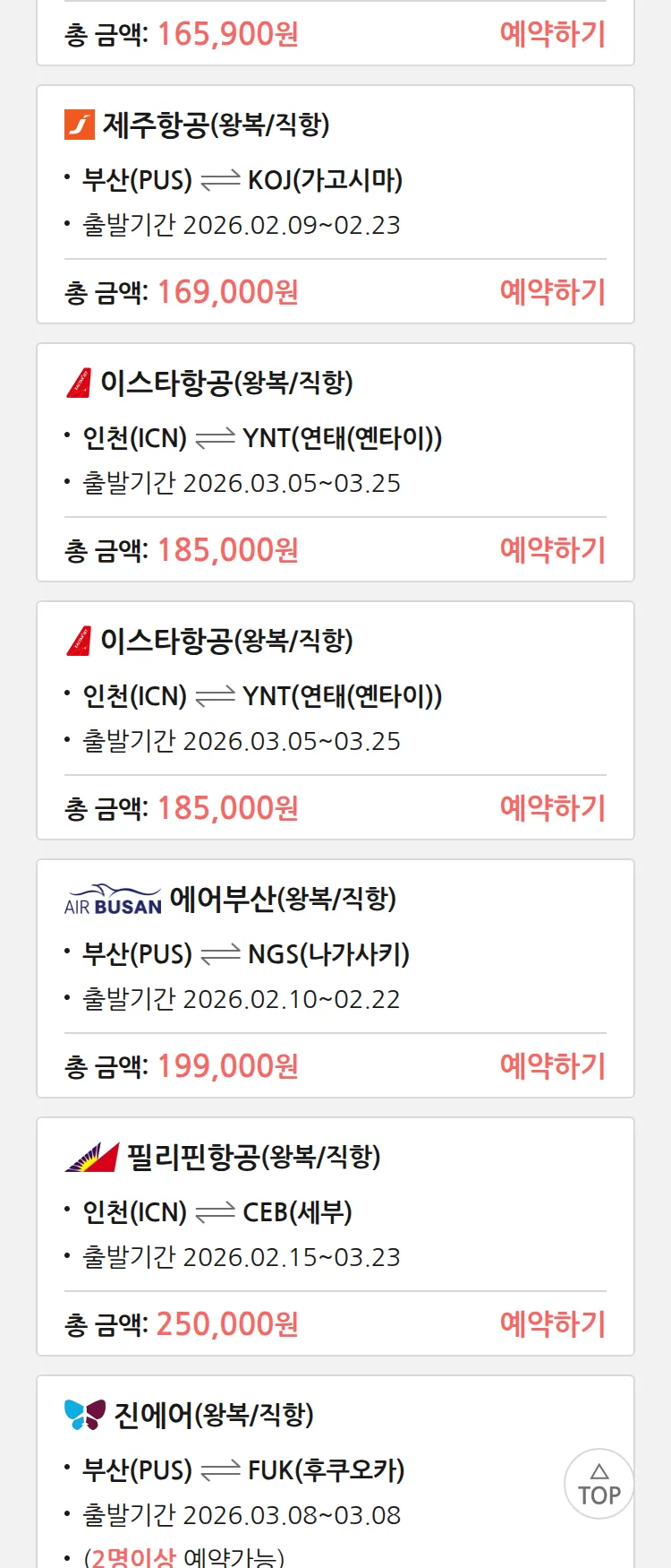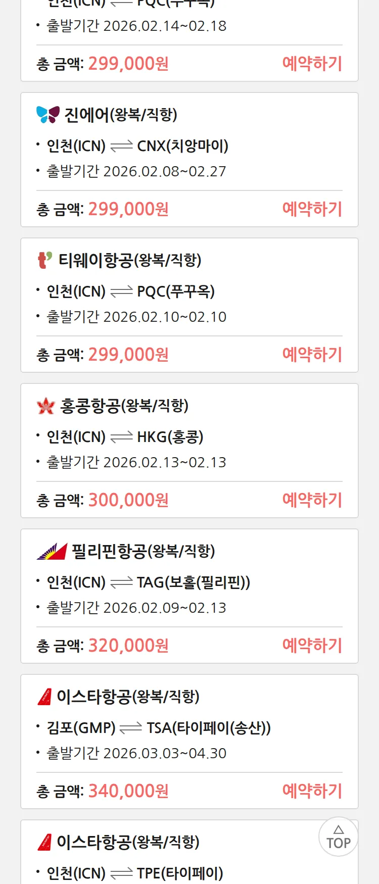 (2월2일(월)) 땡처리 특가 항공권