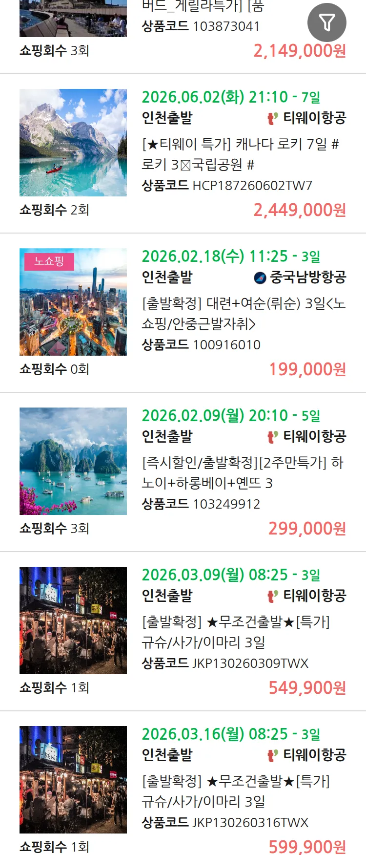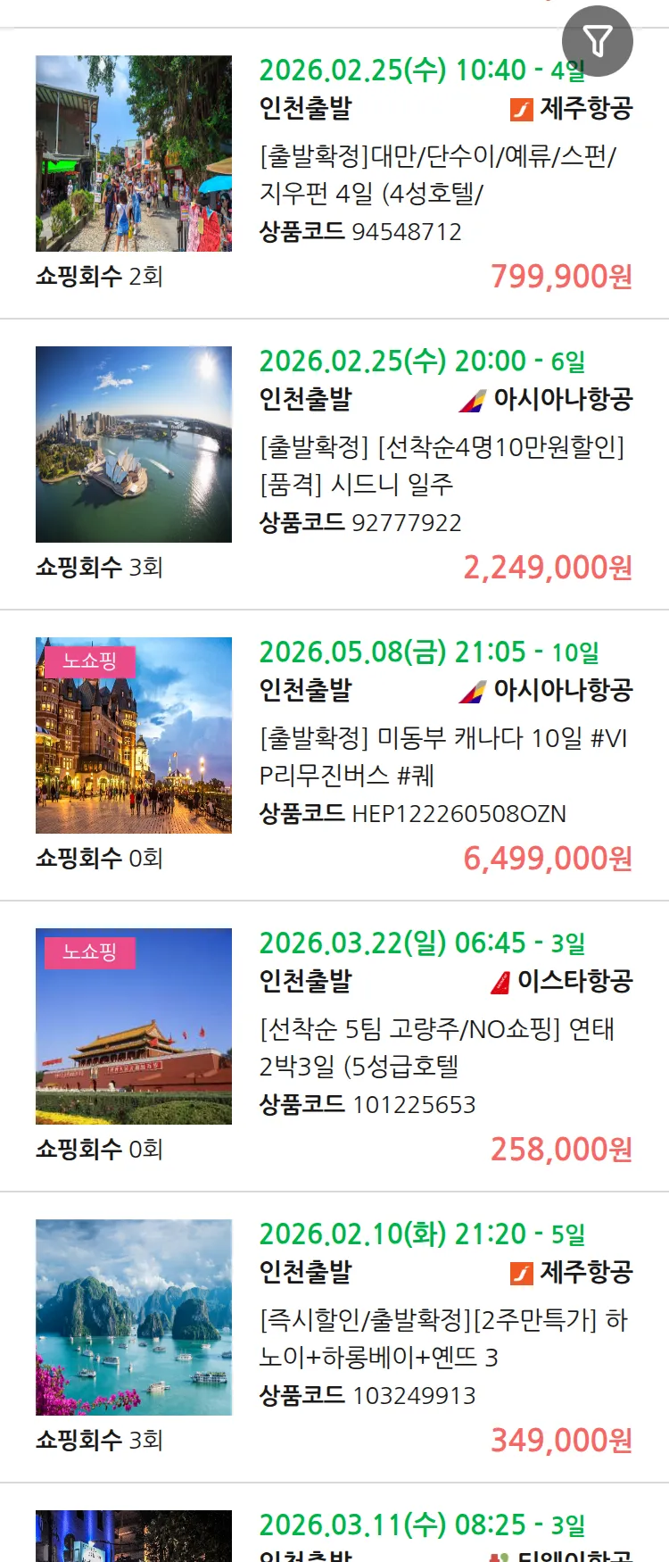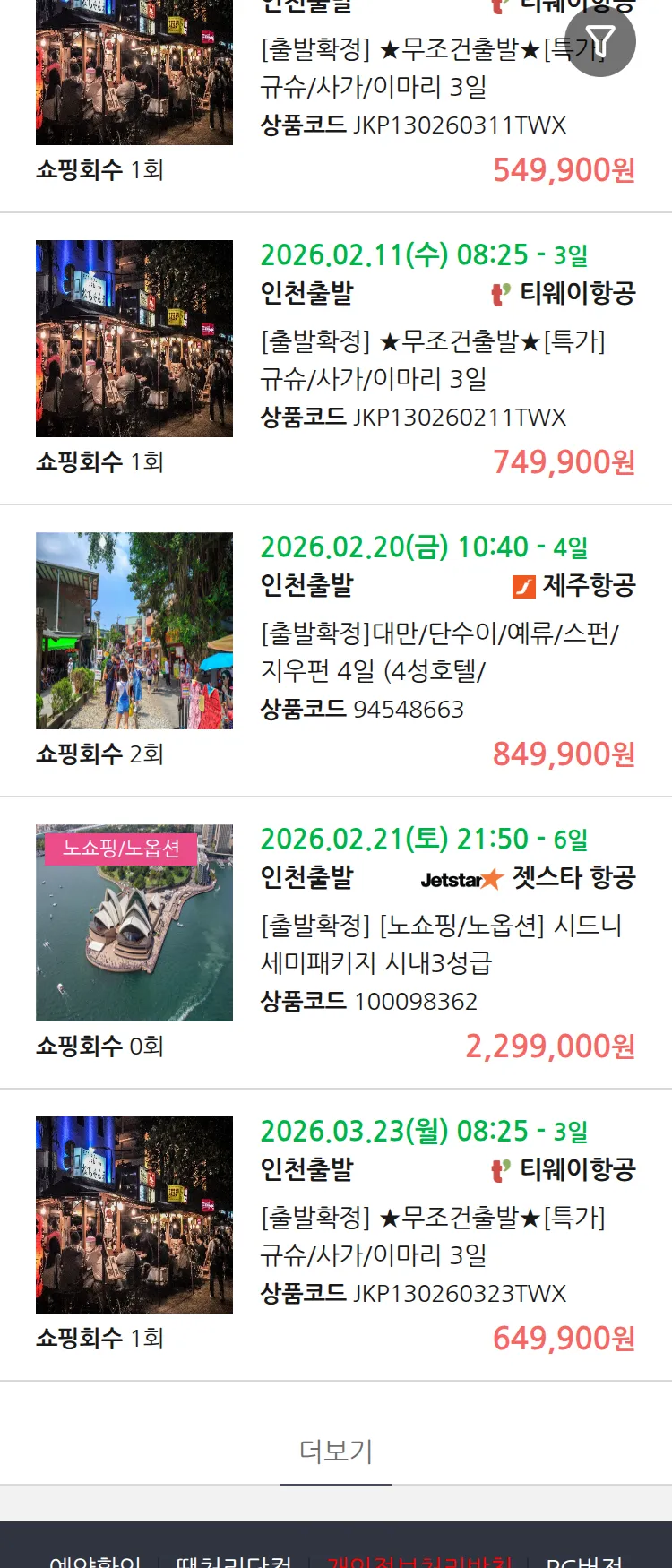 (2월1일(일)) 땡처리 99.9% 확정 패키지