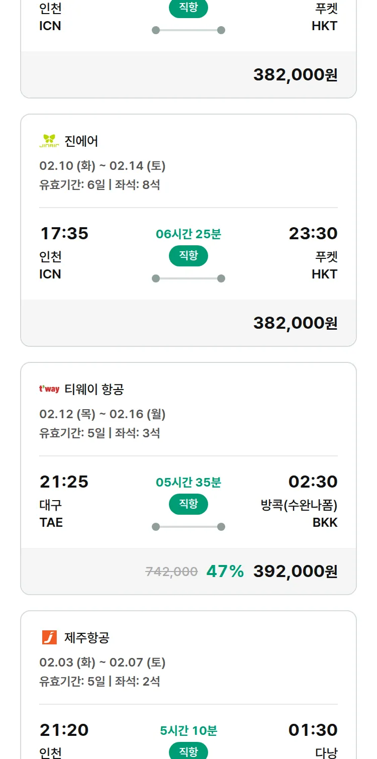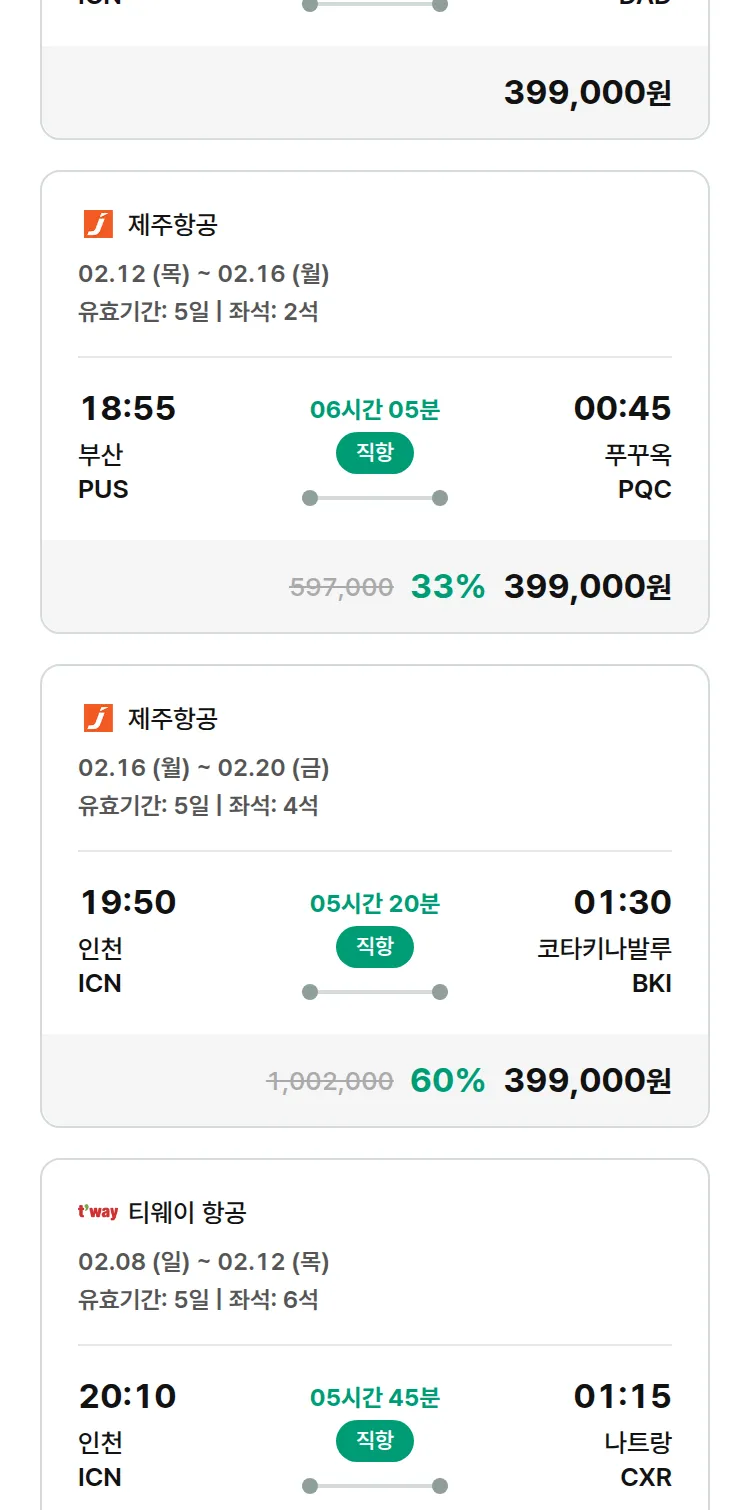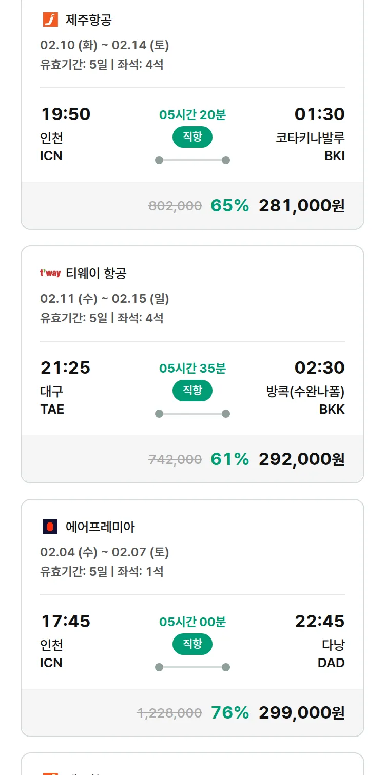 (2월1일(일)) 땡처리 특가 항공권