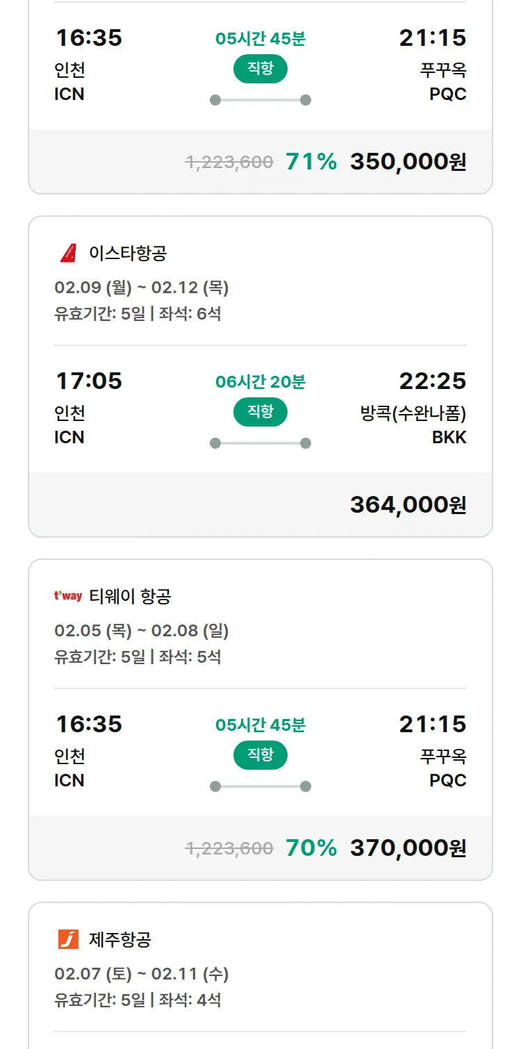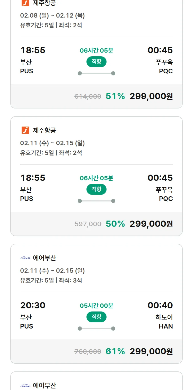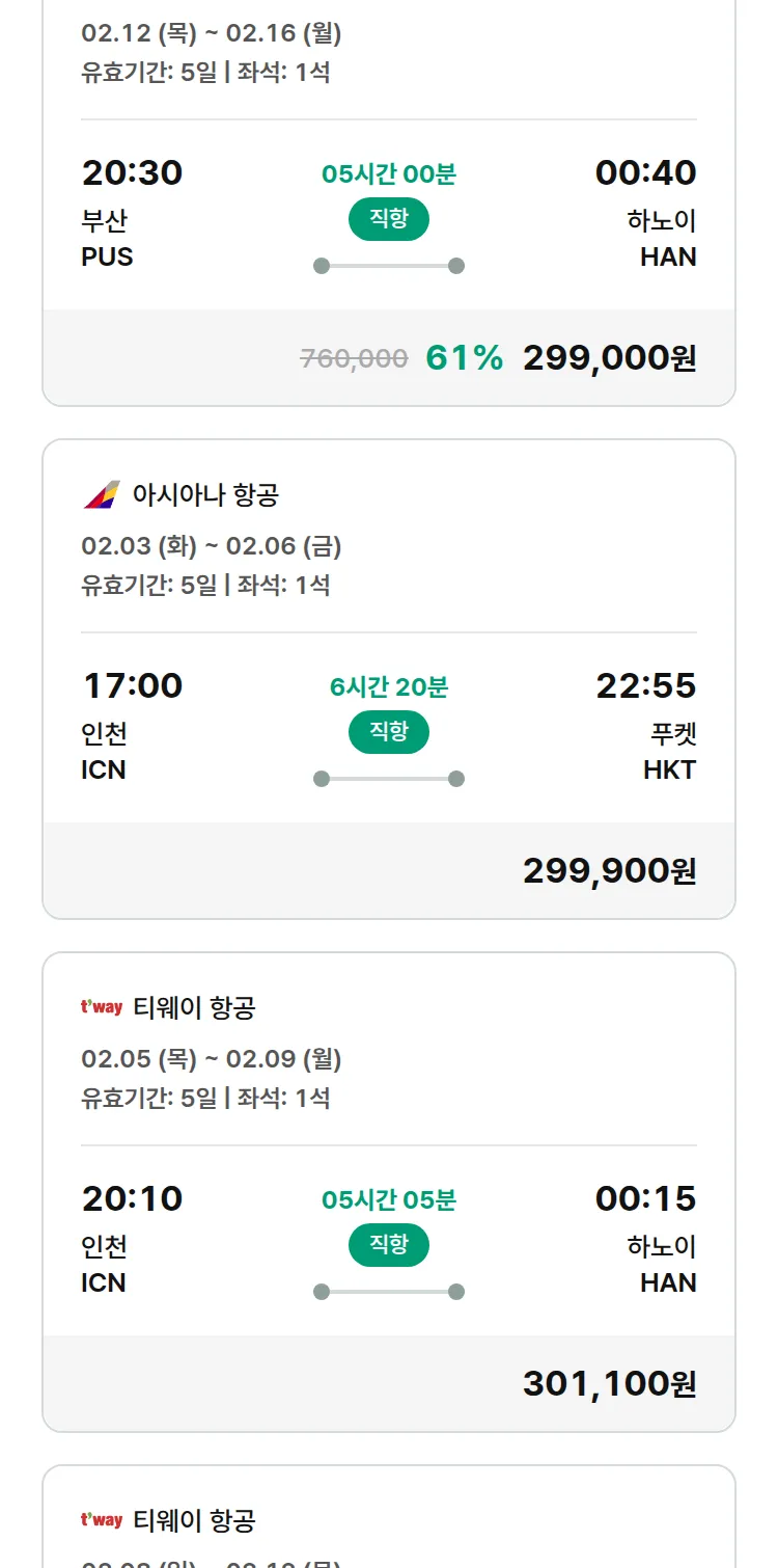 (2월1일(일)) 땡처리 특가 항공권