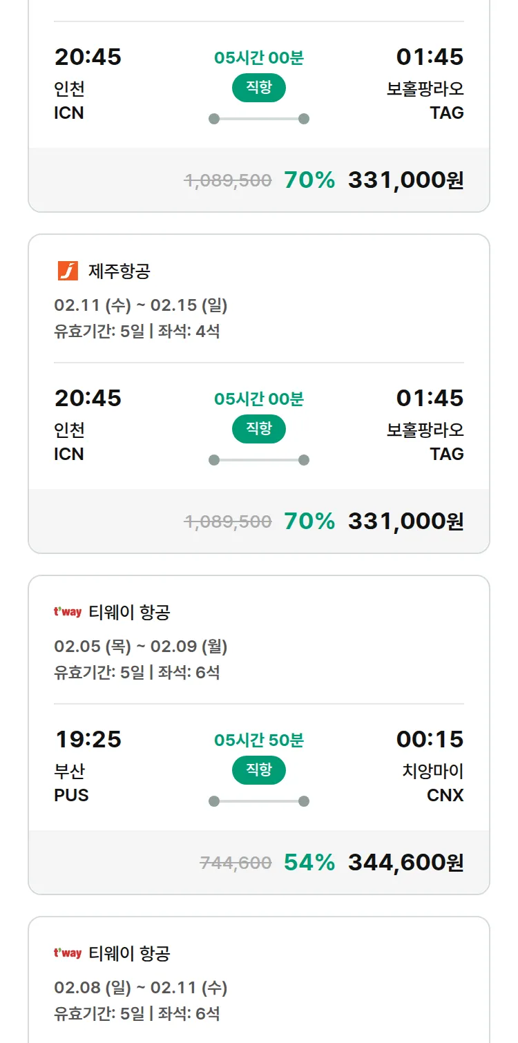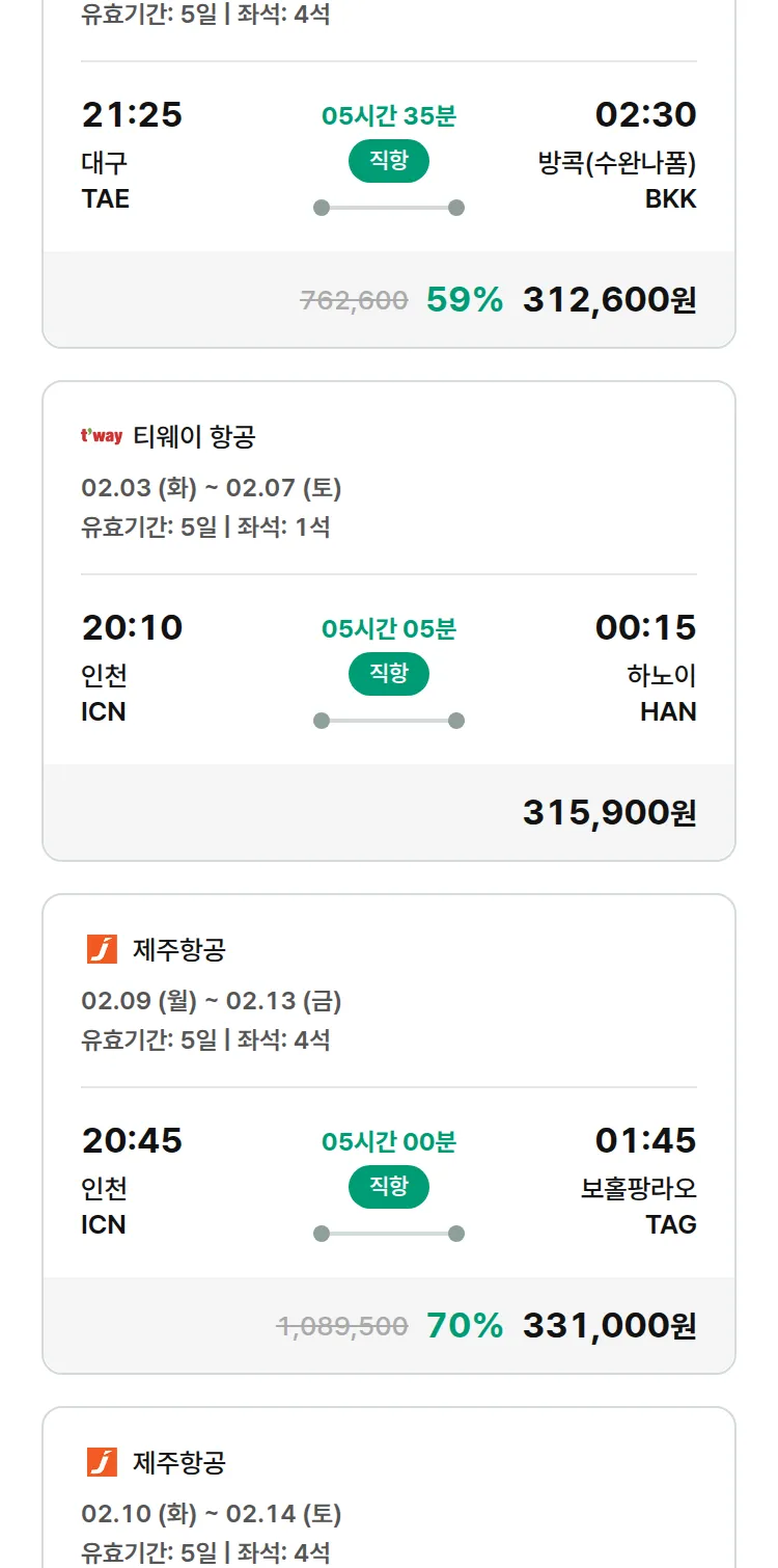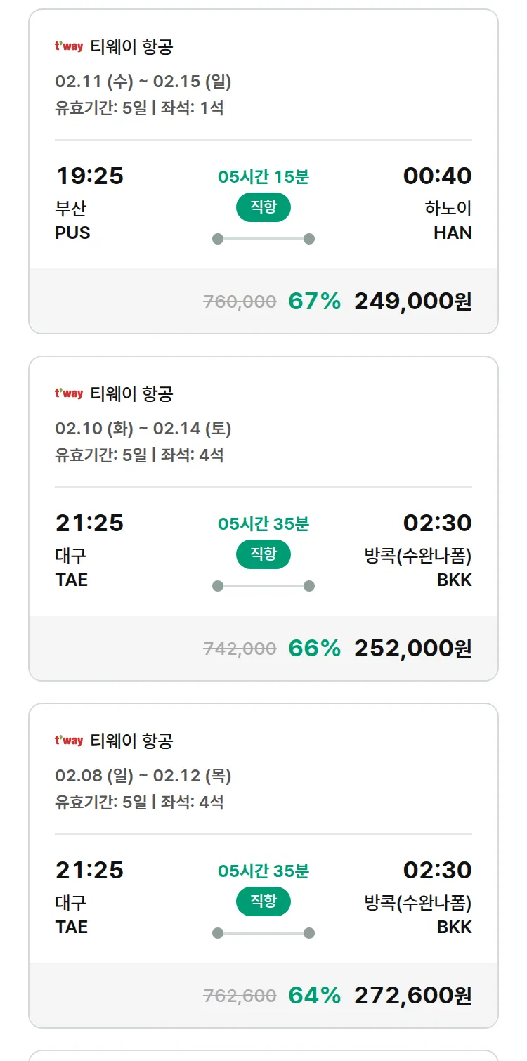 (2월2일(월)) 땡처리 특가 항공권