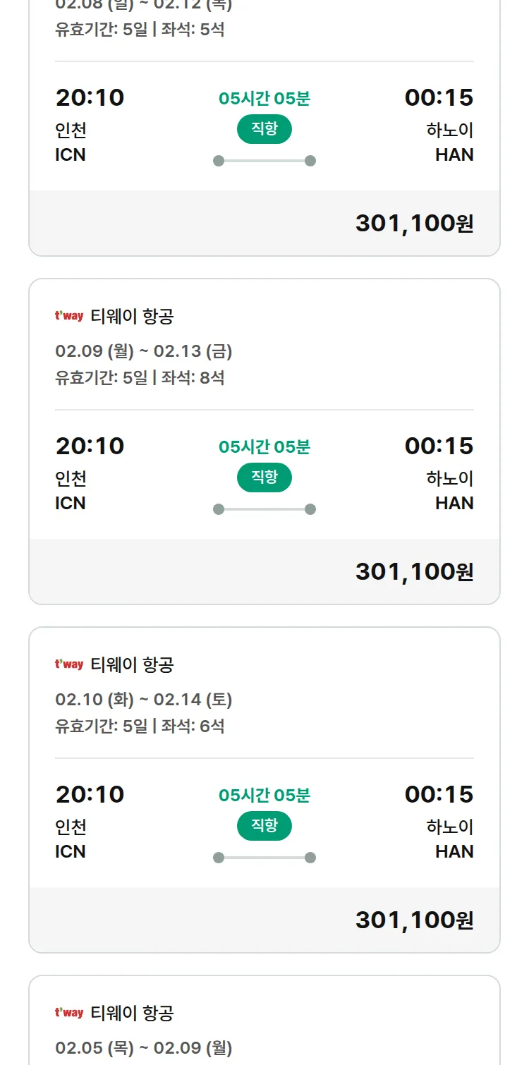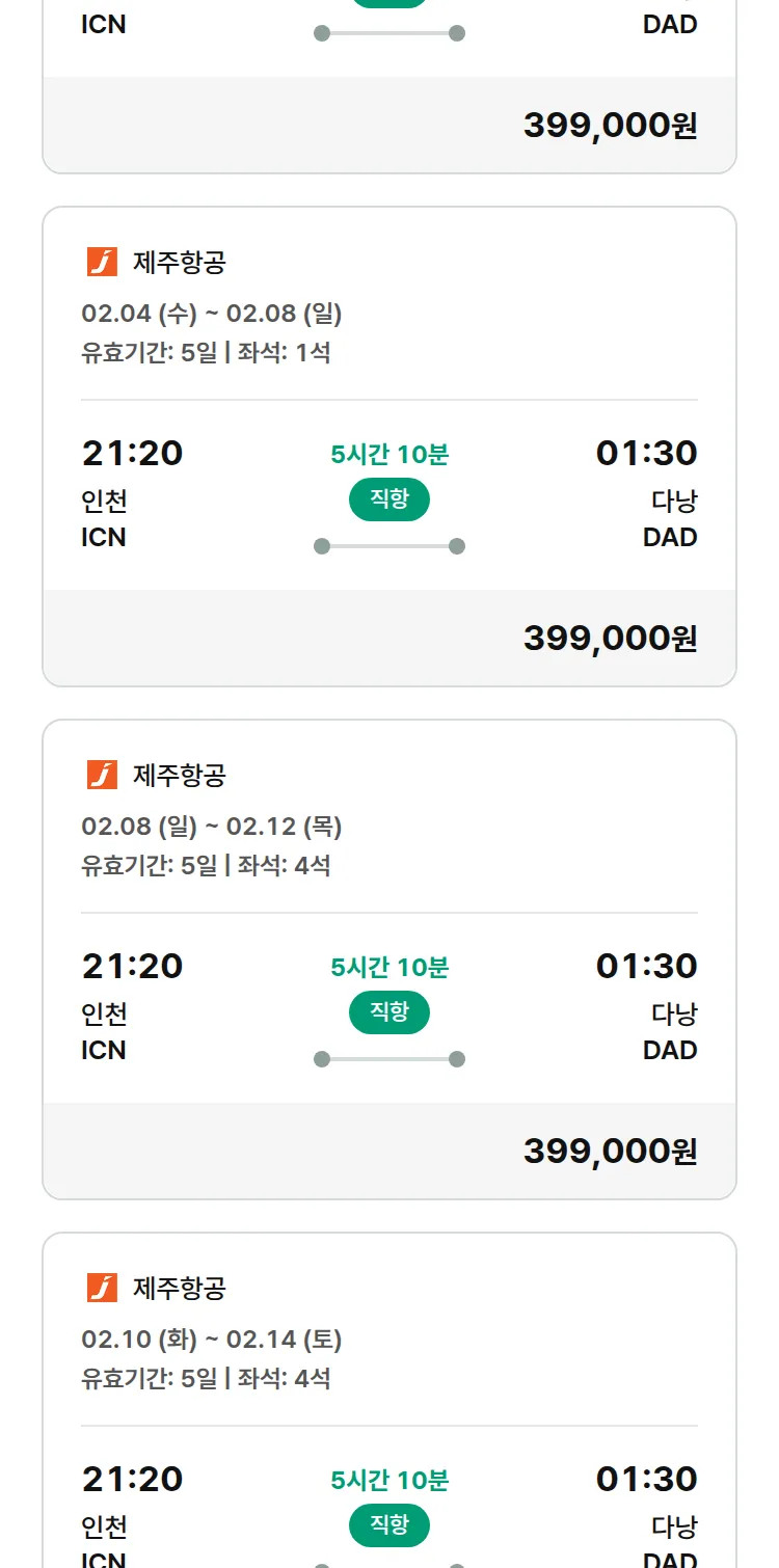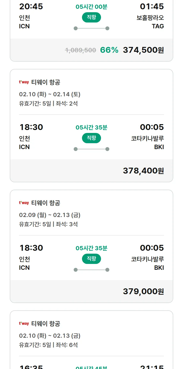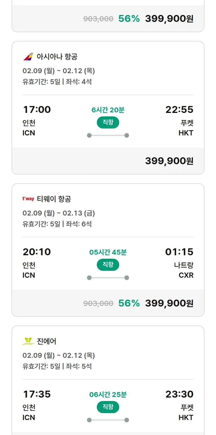 (2월2일(월)) 땡처리 특가 항공권