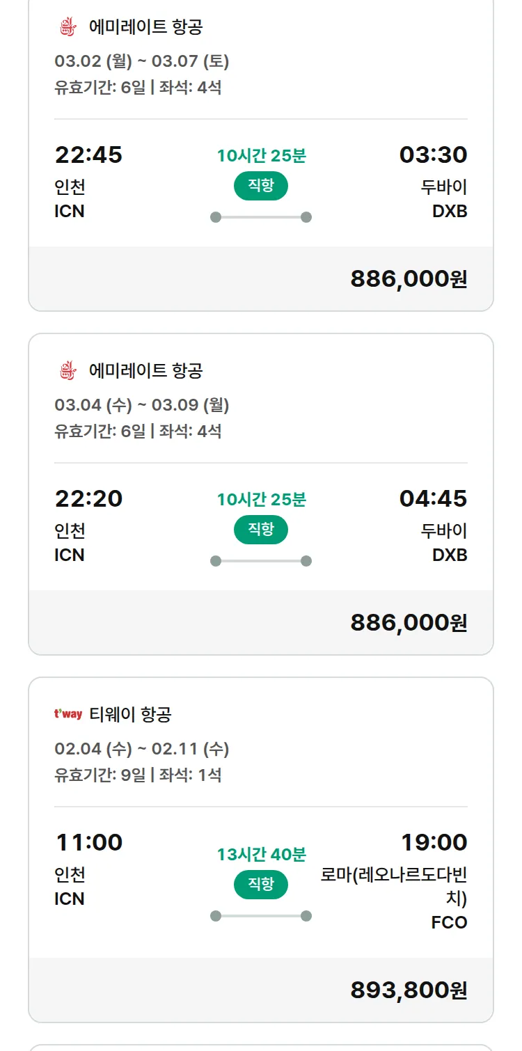(2월1일(일)) 땡처리 유럽 긴급 패키지