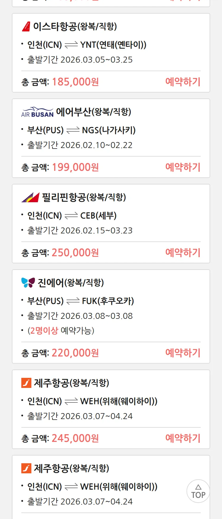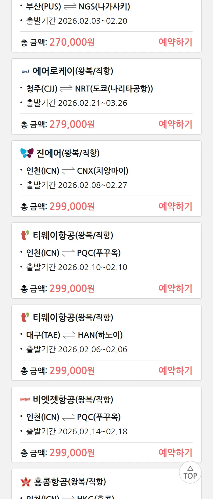 (1월 31일(토)) 땡처리 연휴 패키지 패키지