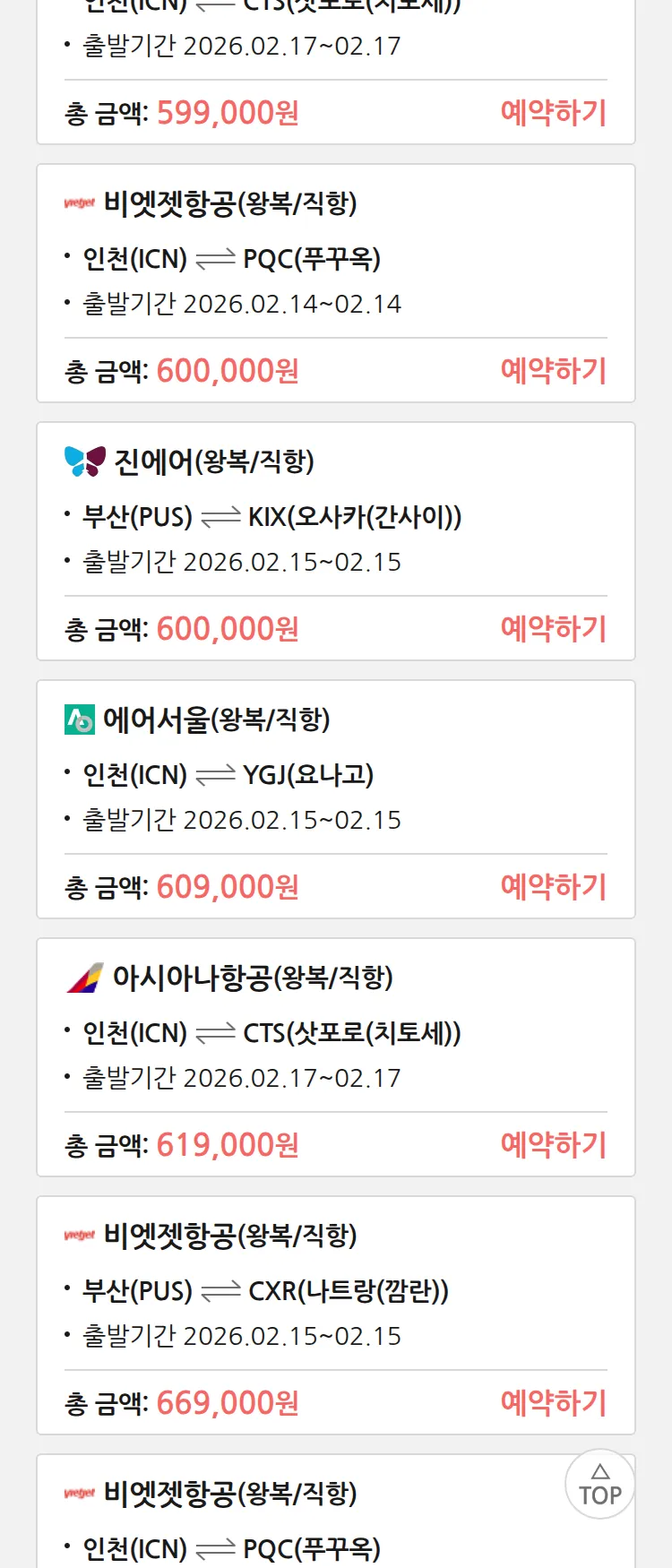 (2월1일(일)) 땡처리 99.9% 확정 패키지