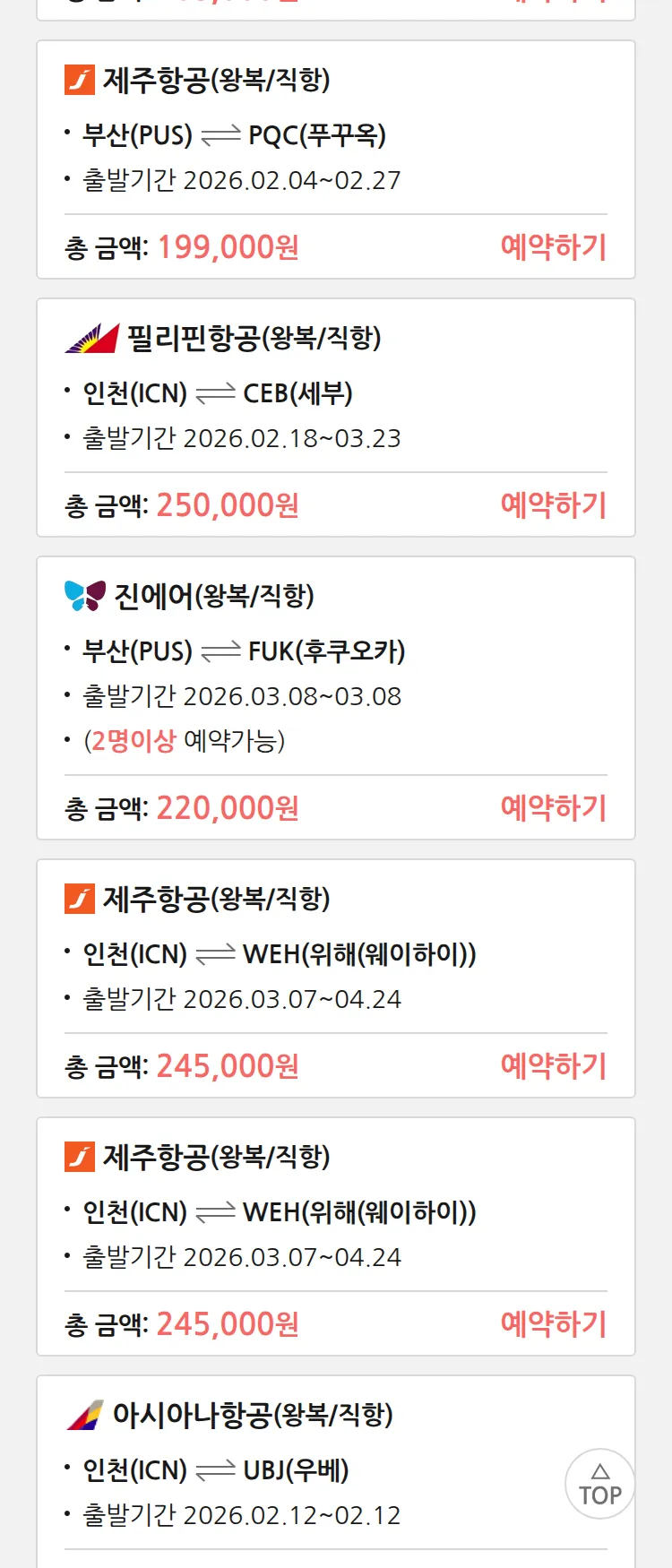 (2월2일(월)) 땡처리 99.9% 확정 패키지
