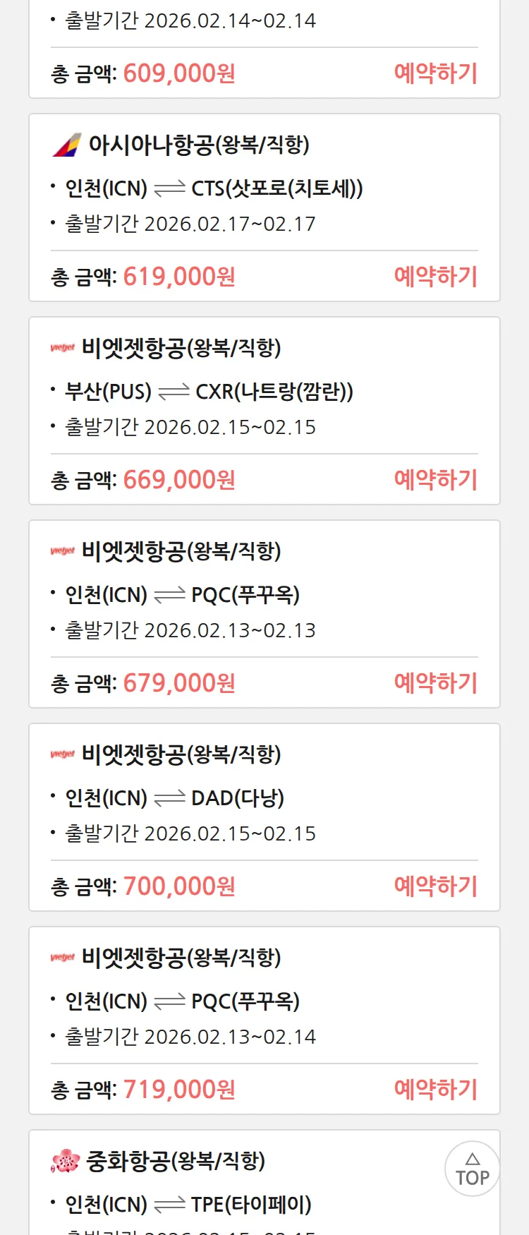 (2월3일(화)) 땡처리 99.9% 확정 패키지