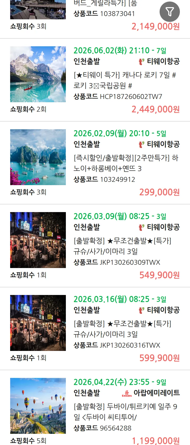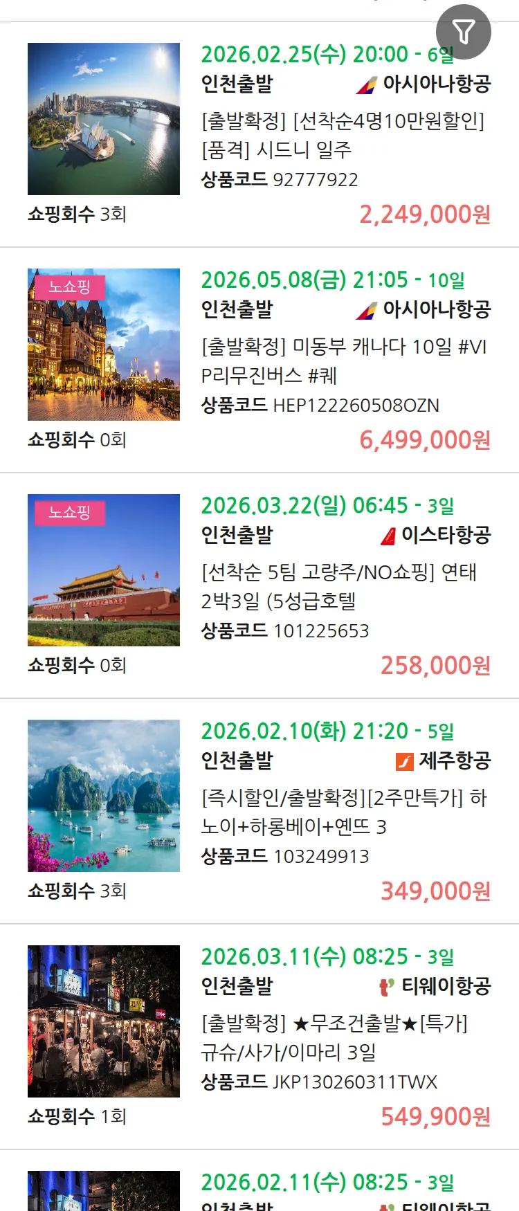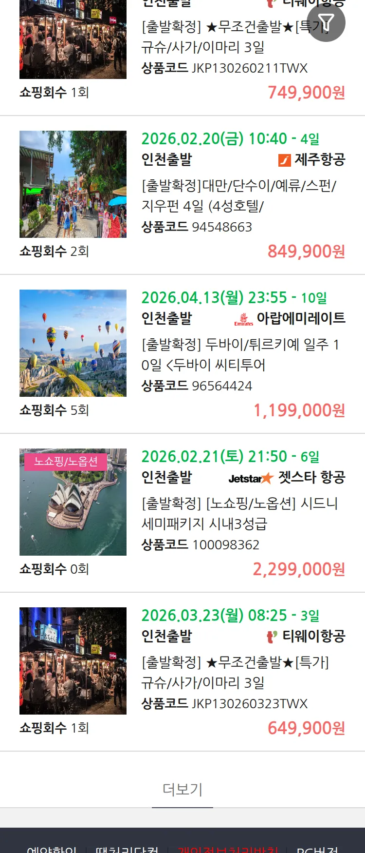 (2월3일(화)) 땡처리 99.9% 확정 패키지