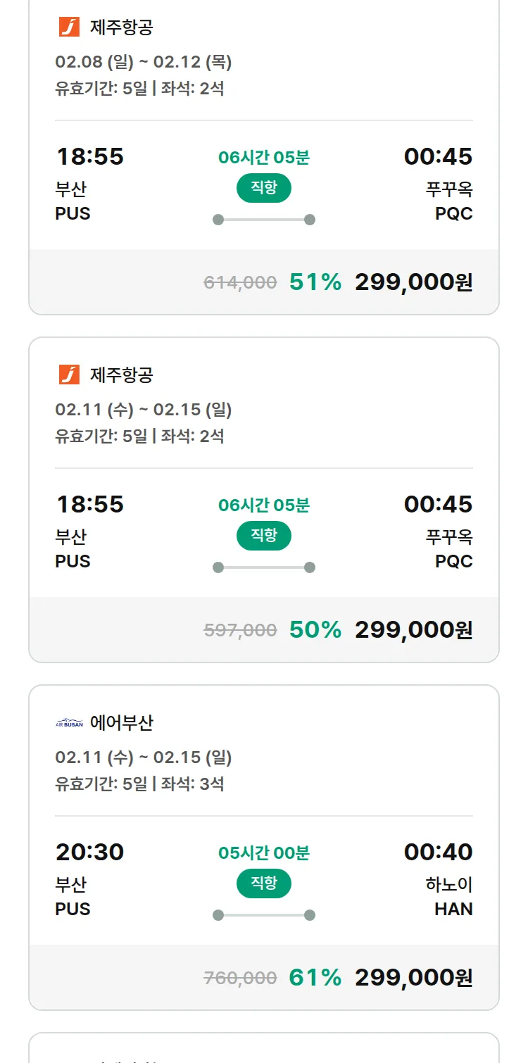 (2월2일(월)) 땡처리 99.9% 확정 패키지