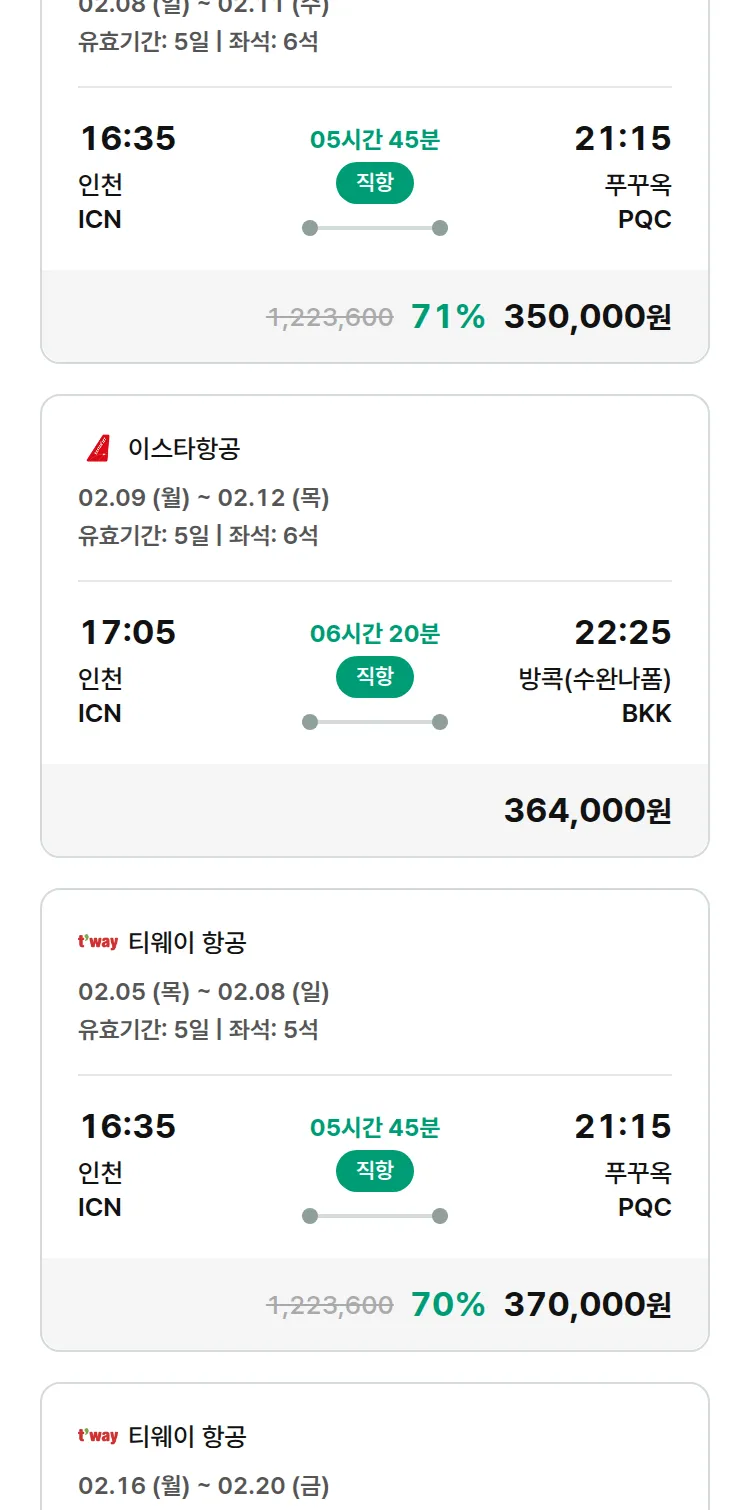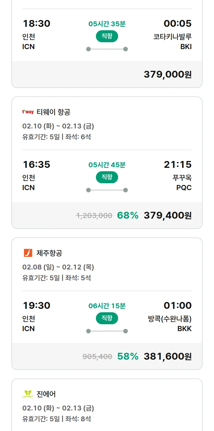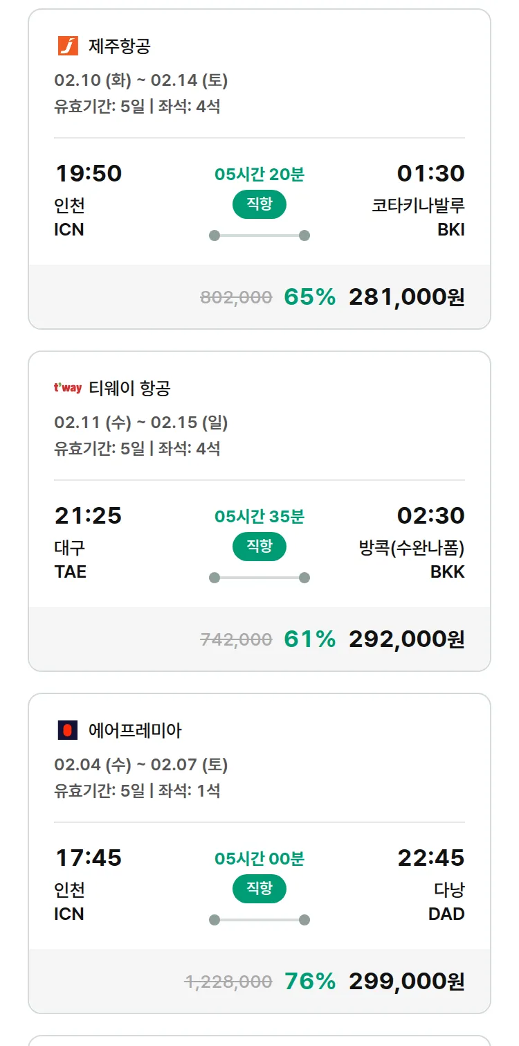(2월3일(화)) 모두투어 동남아 특가 항공권
