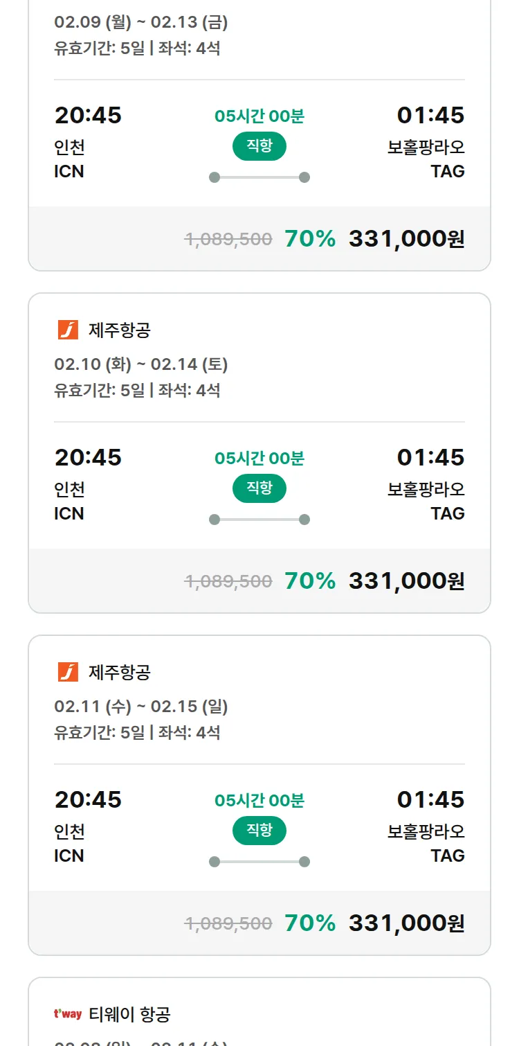 (2월2일(월)) 땡처리 연휴 패키지 패키지