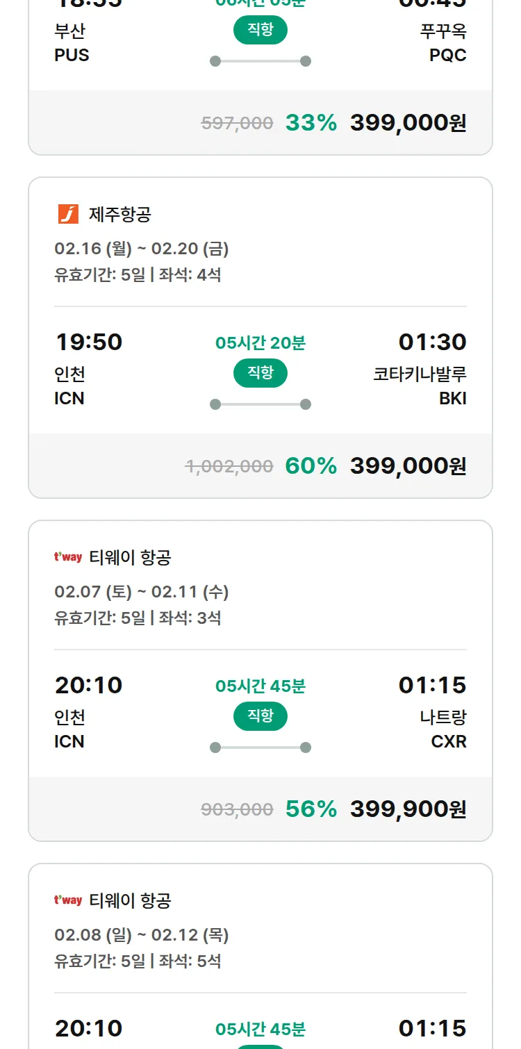 (2월3일(화)) 땡처리 99.9% 확정 패키지