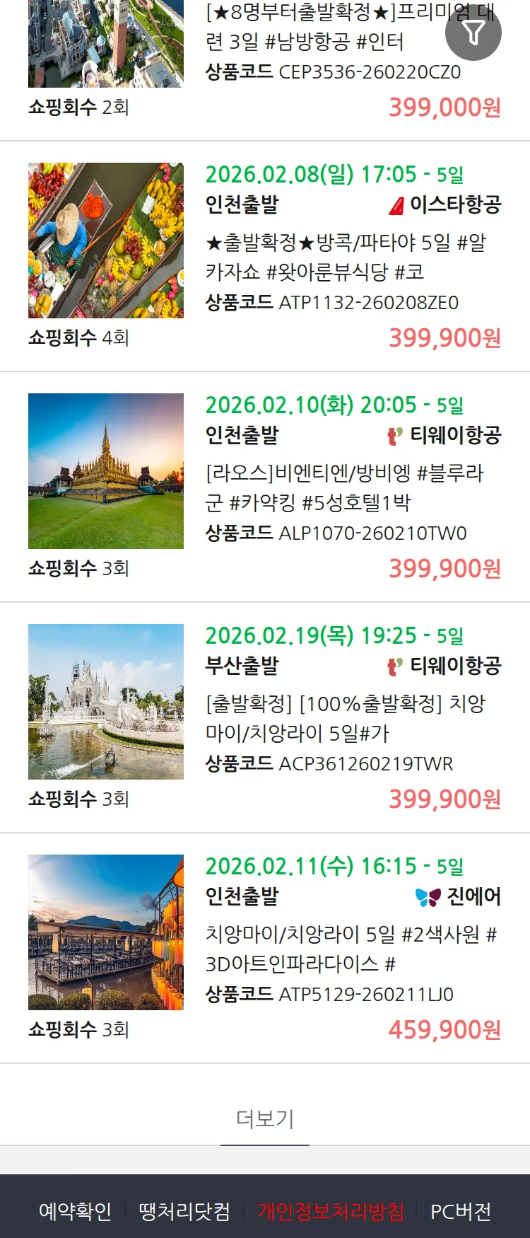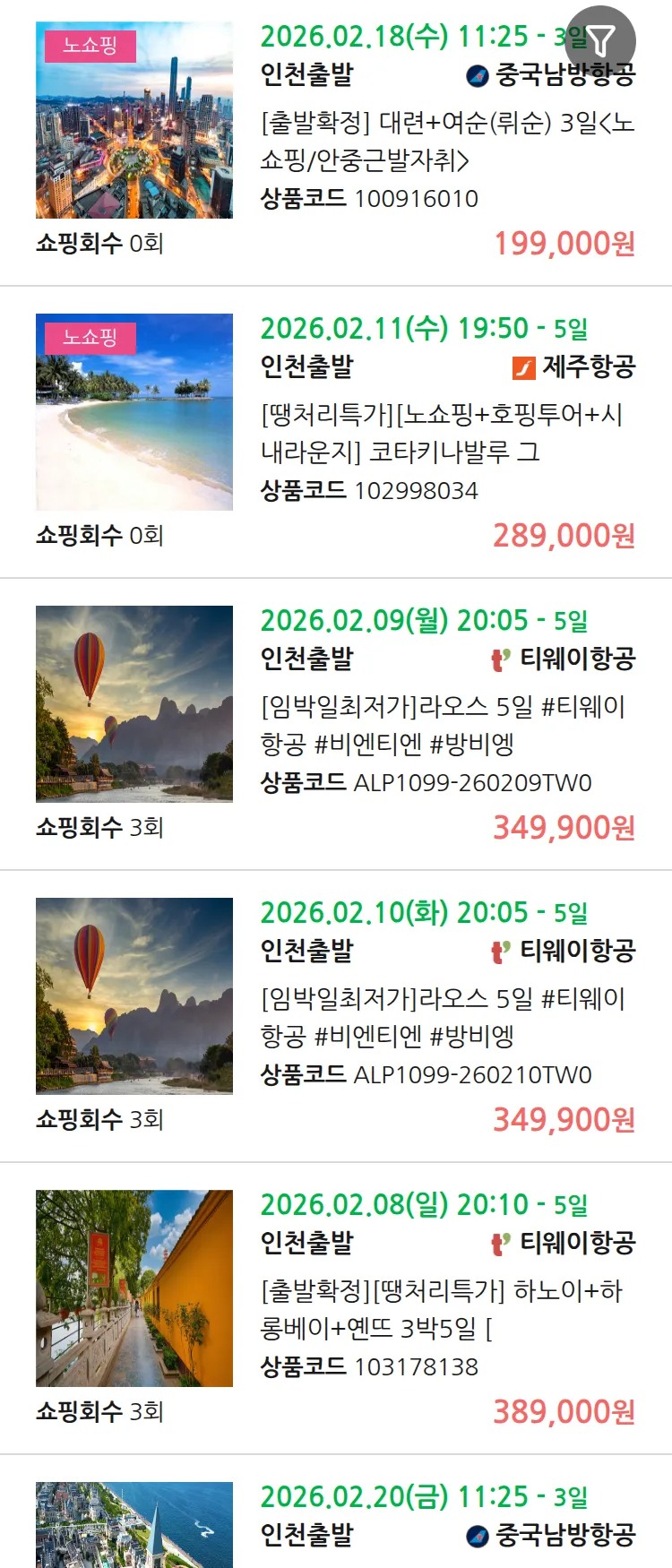 (2월3일(화)) 땡처리 99.9% 확정 패키지