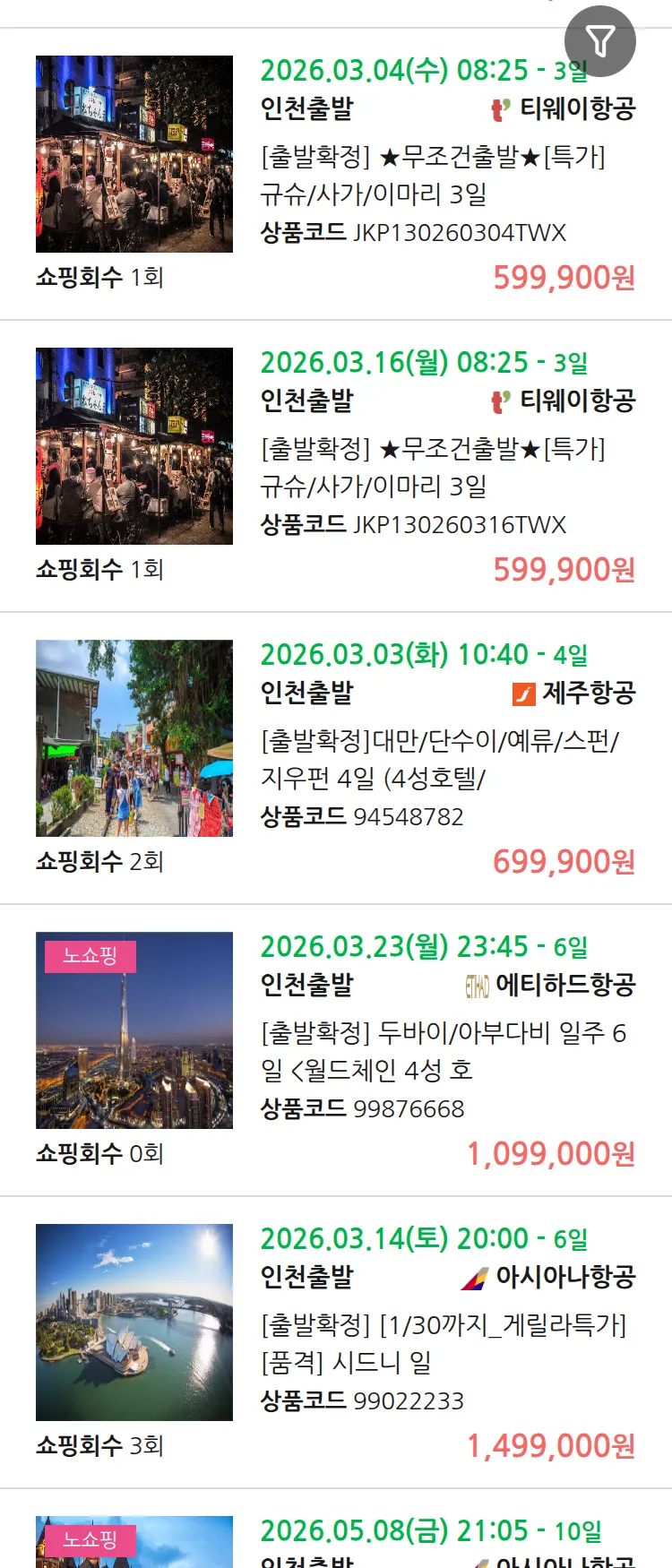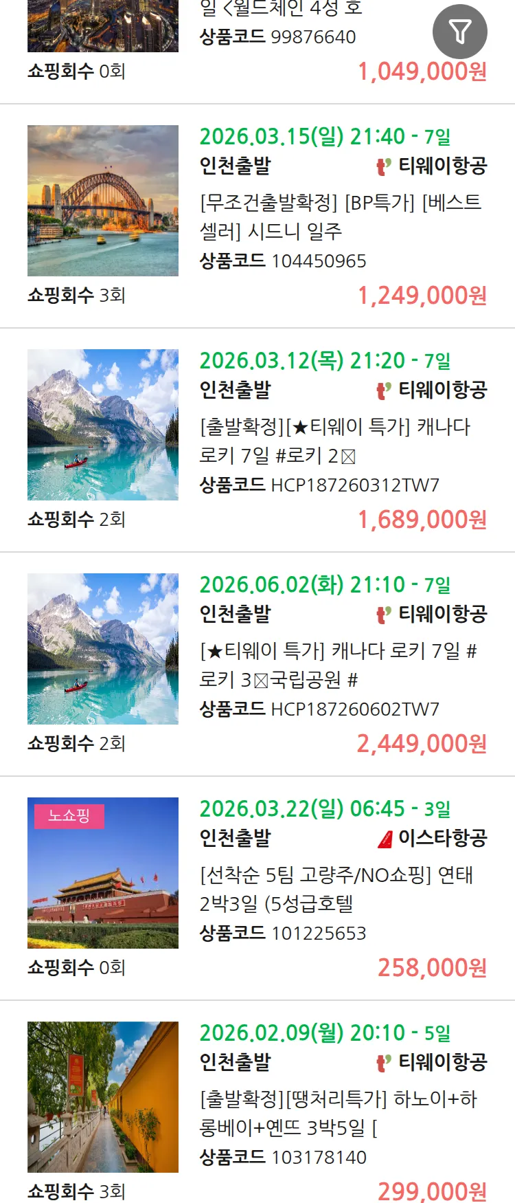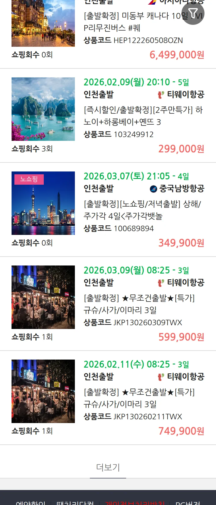 (2월3일(화)) 땡처리 99.9% 확정 패키지