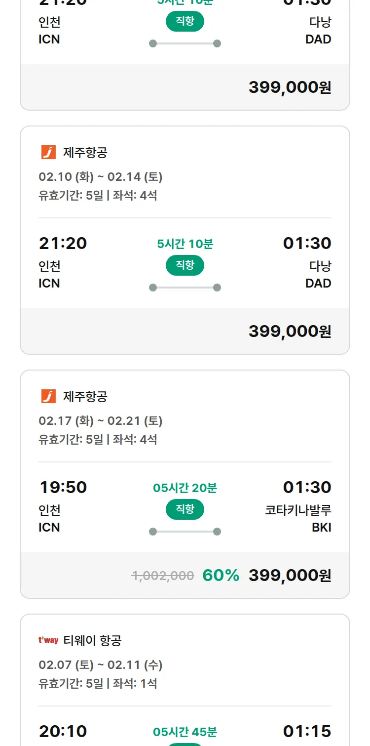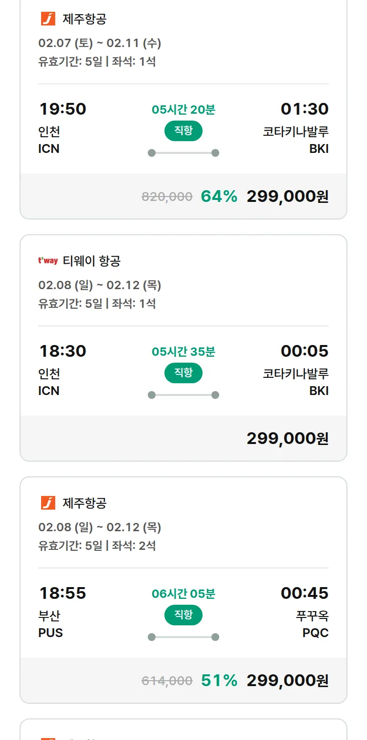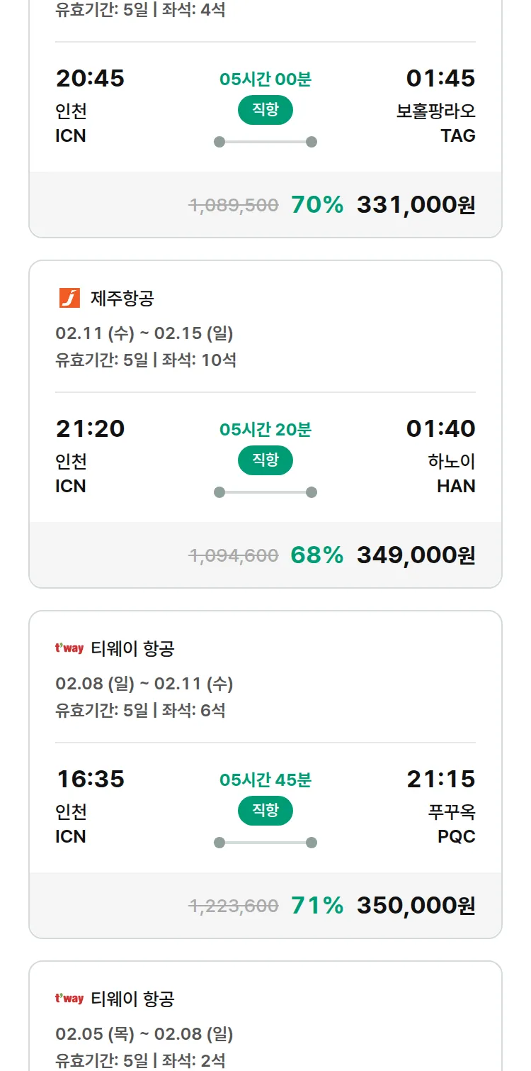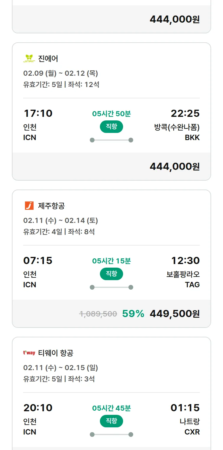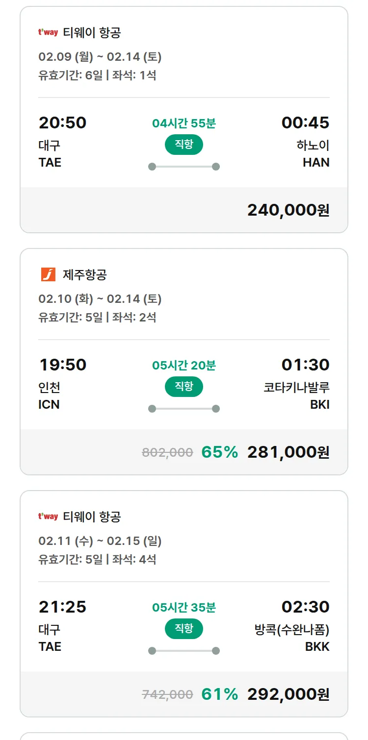 (2월3일(화)) 땡처리 특가 항공권