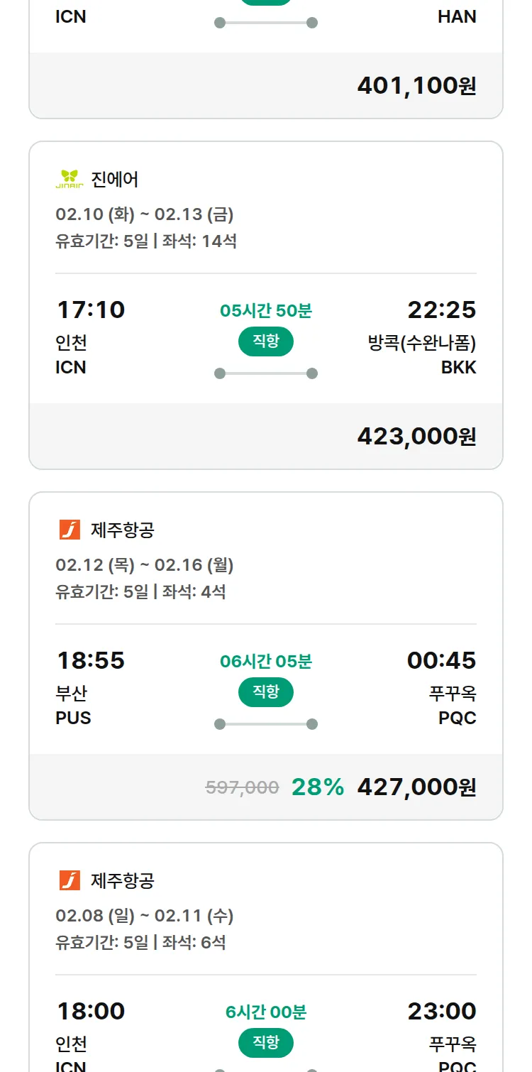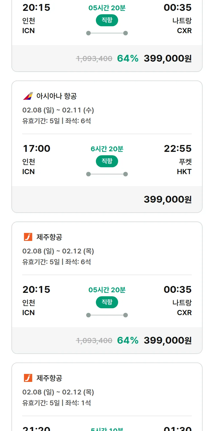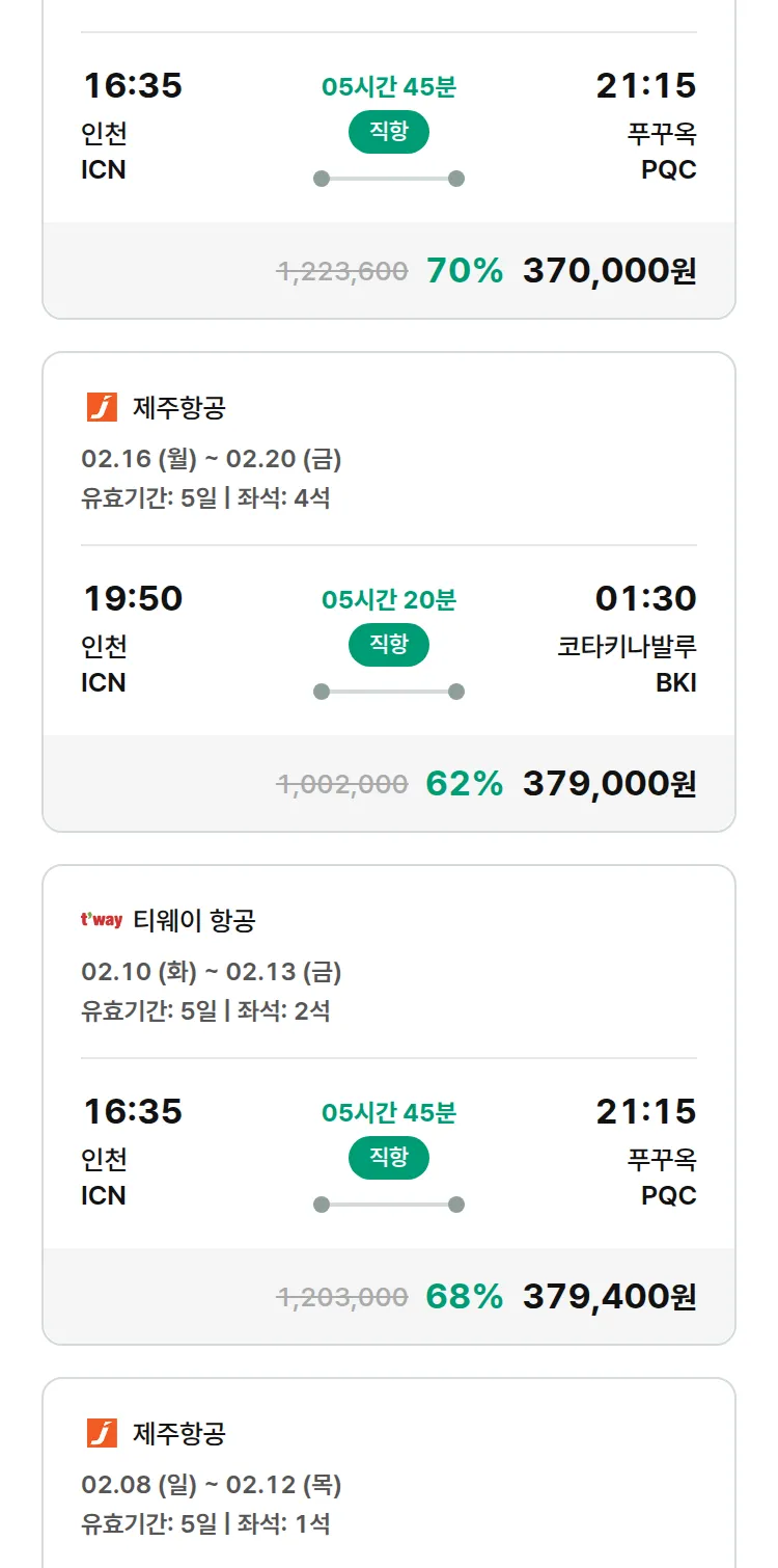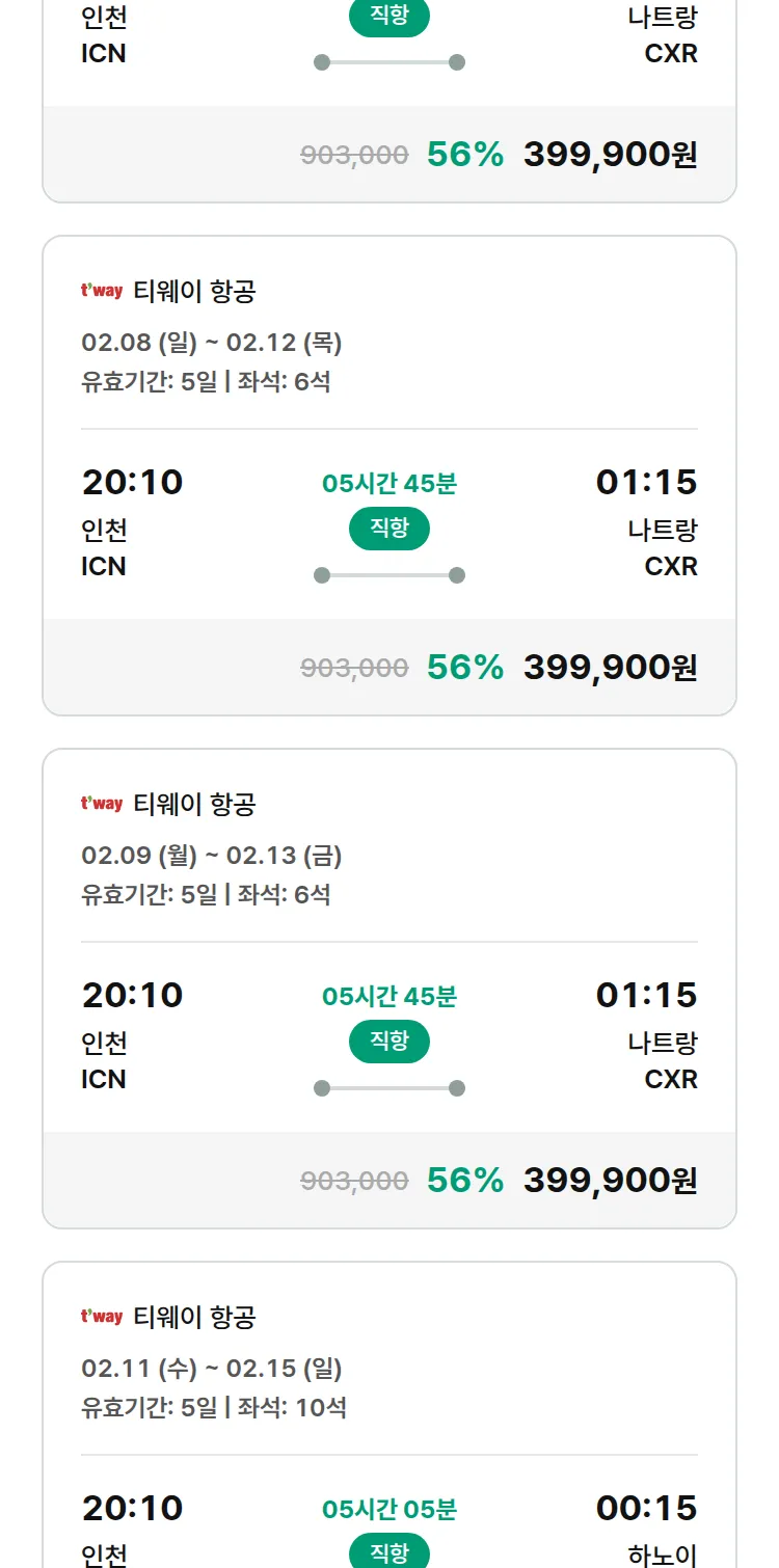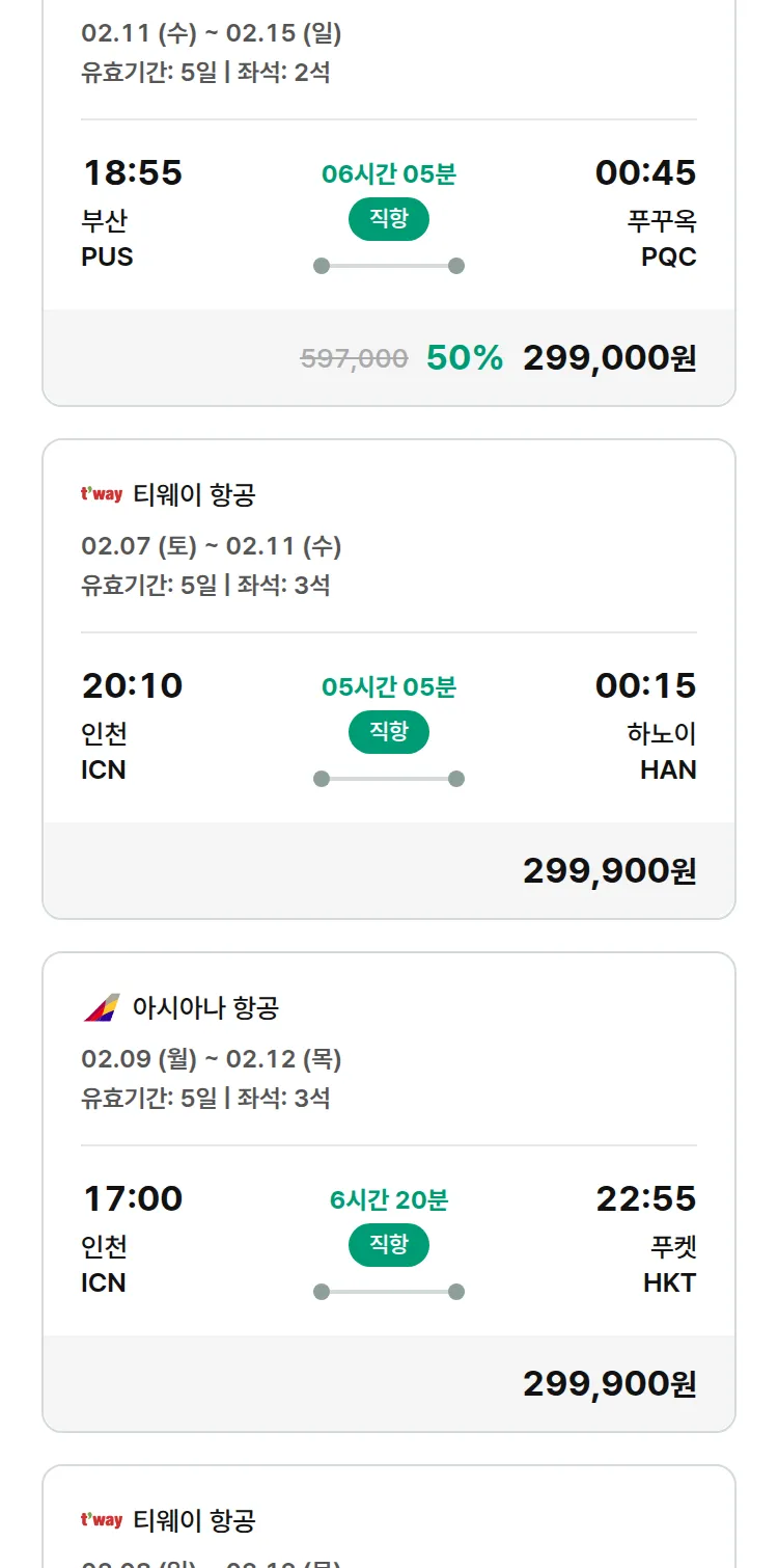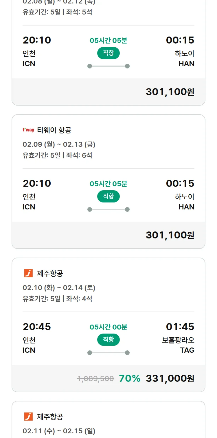 (2월3일(화)) 땡처리 특가 항공권