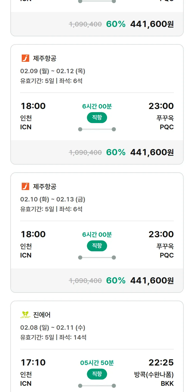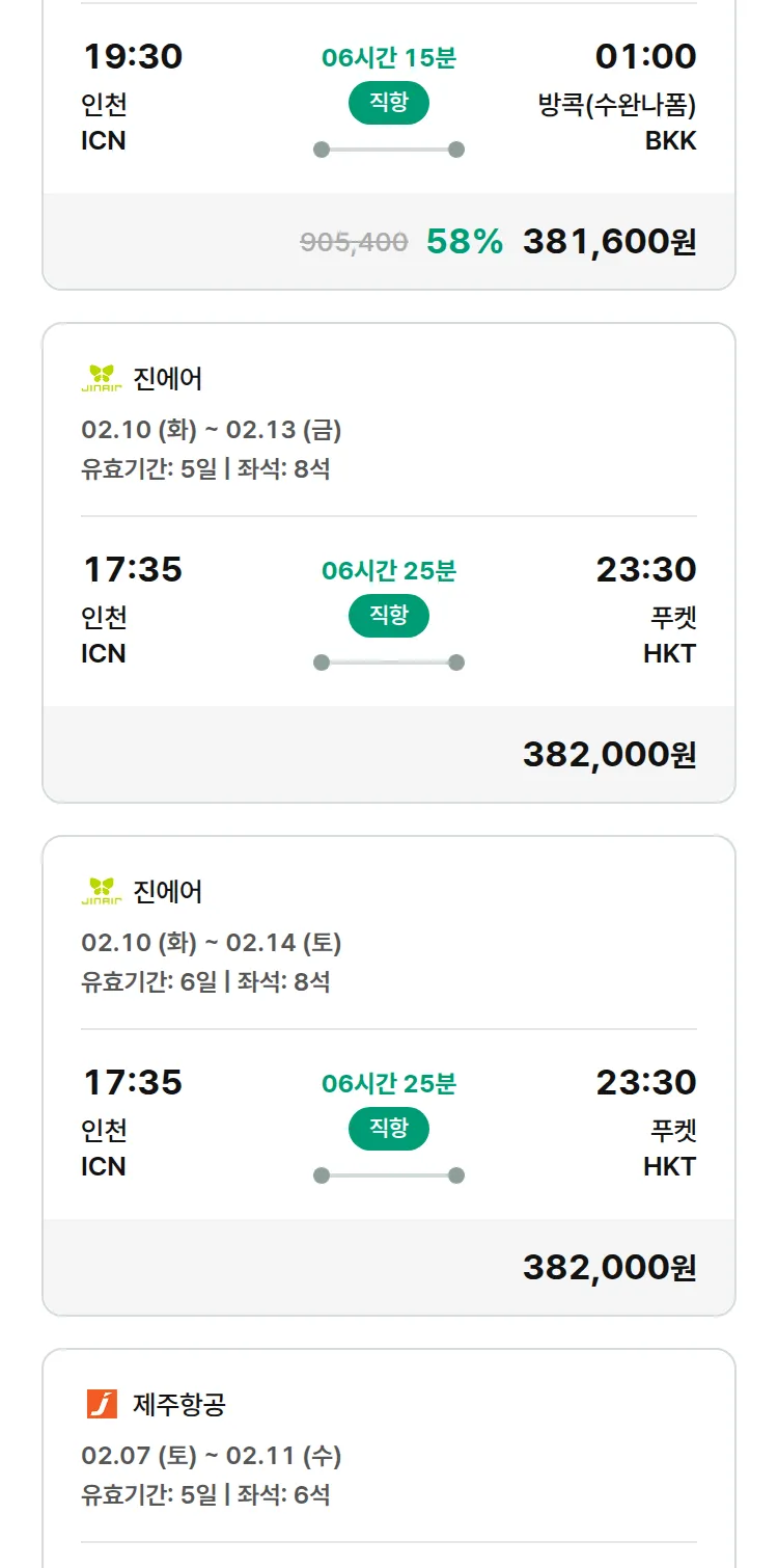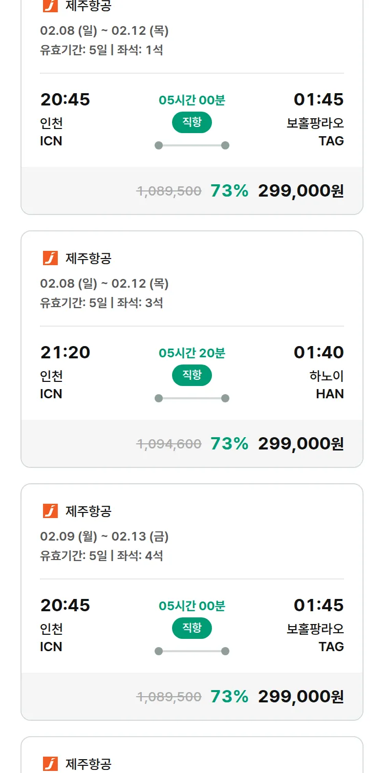 (2월2일(월)) 땡처리 특가 항공권