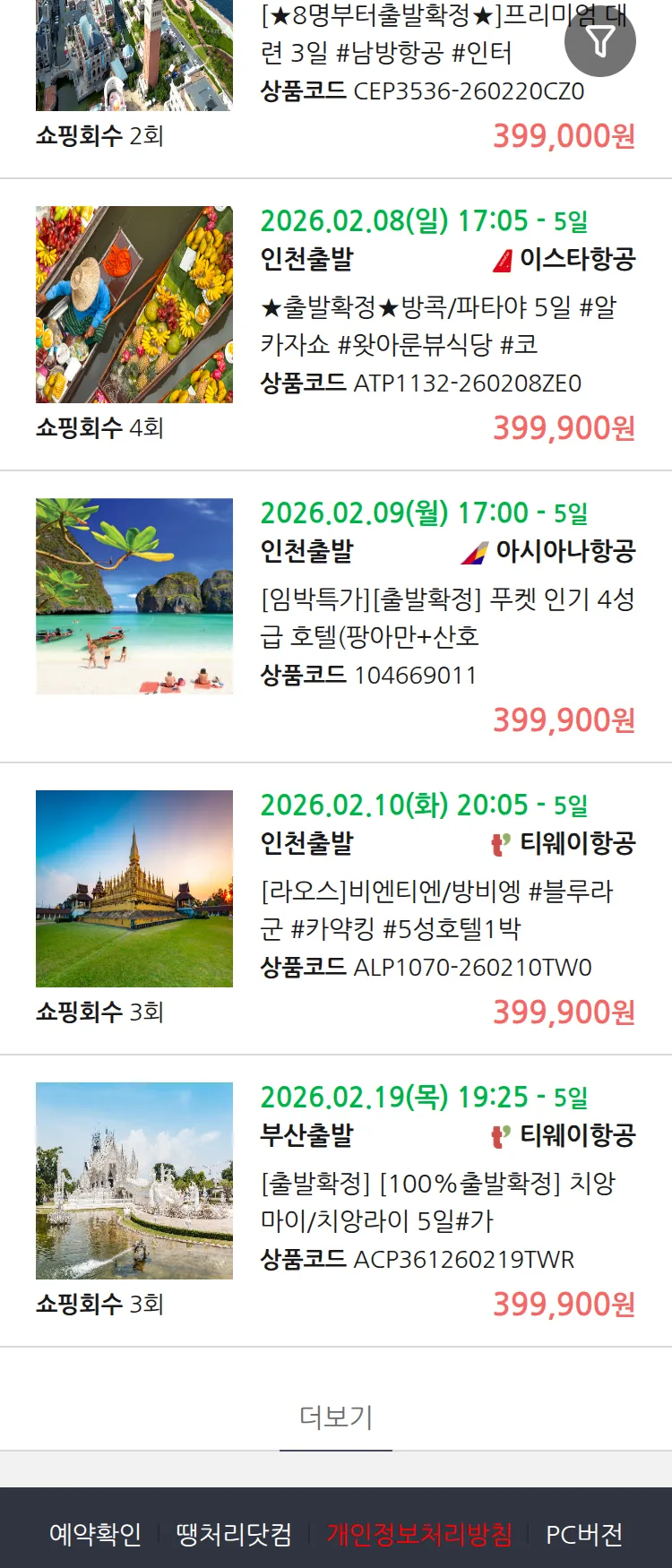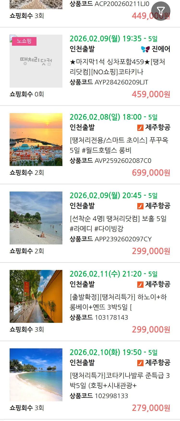 (2월4일(수)) 땡처리 99.9% 확정 패키지
