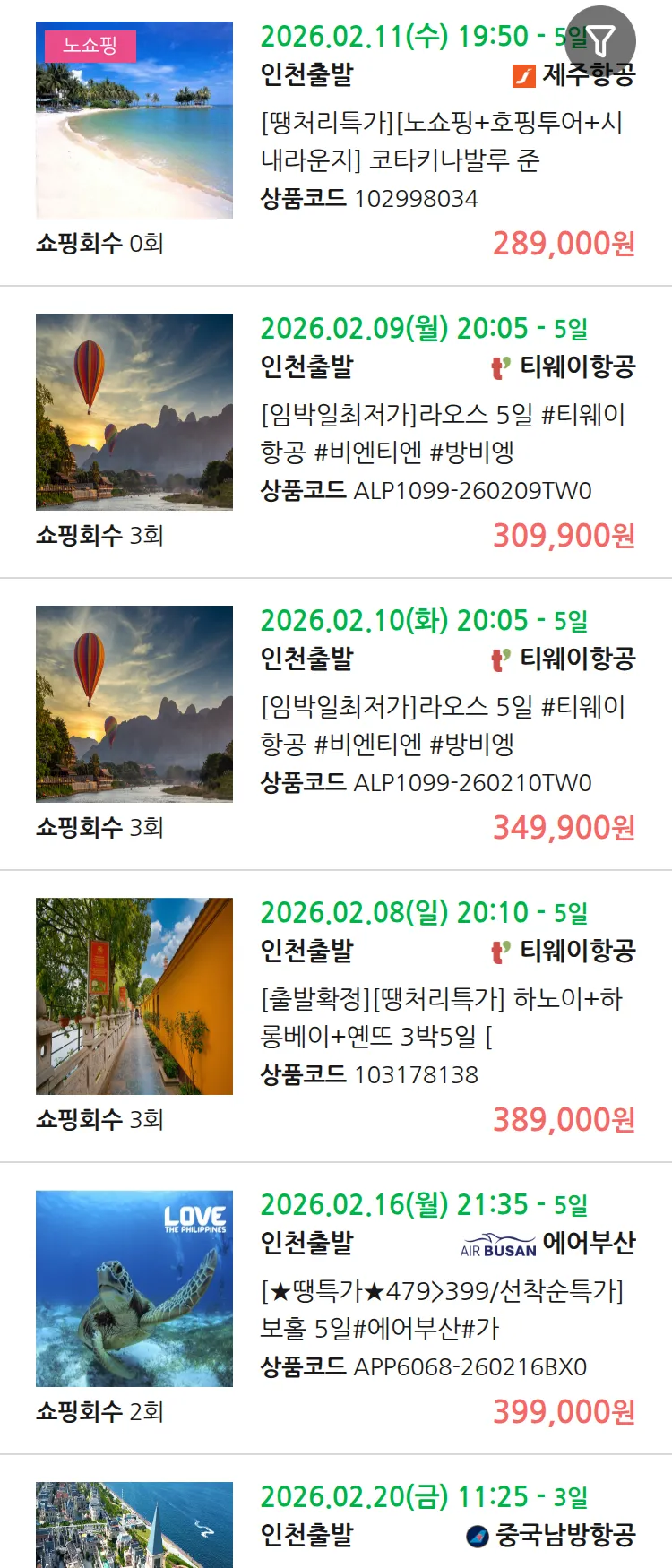 (2월3일(화)) 땡처리 연휴 패키지 패키지