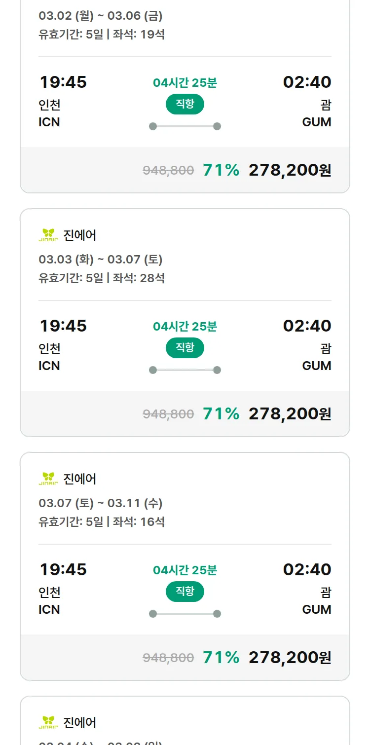 (2월4일(수)) 땡처리 특가 항공권
