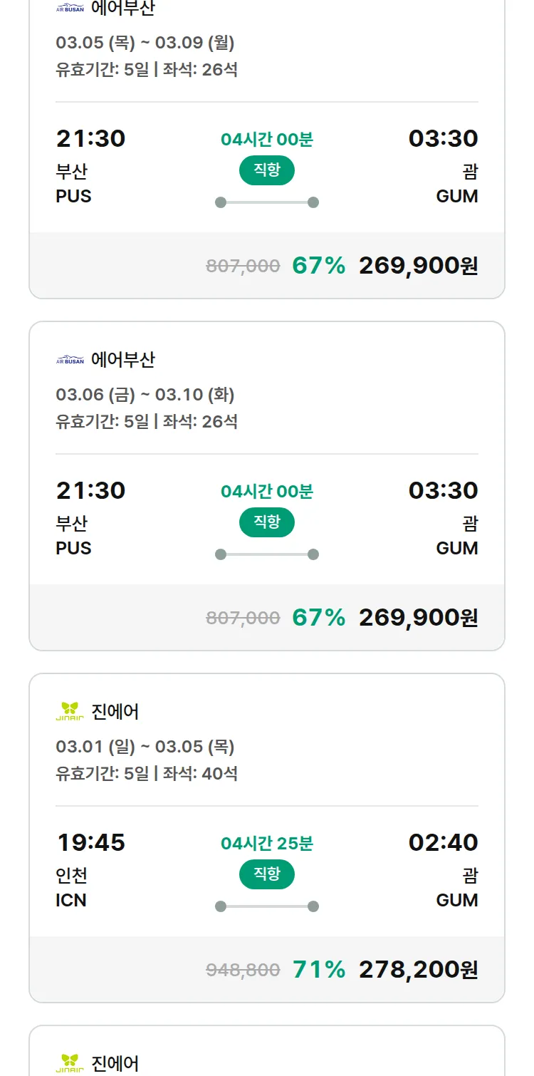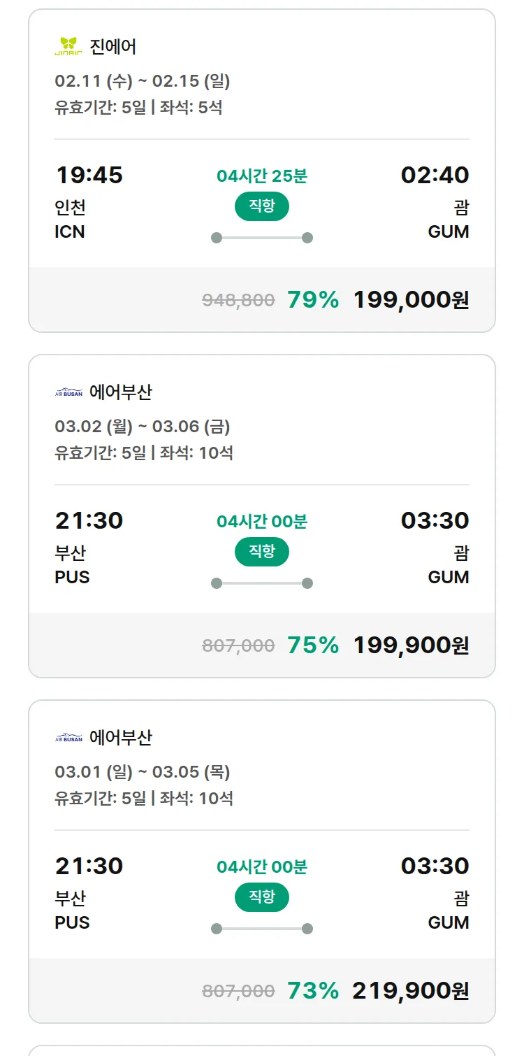 (2월5일(목)) 땡처리 특가 항공권