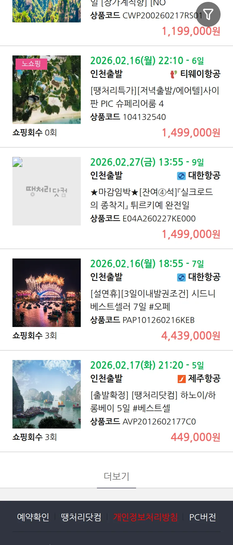 (2월5일(목)) 땡처리 99.9% 확정 패키지