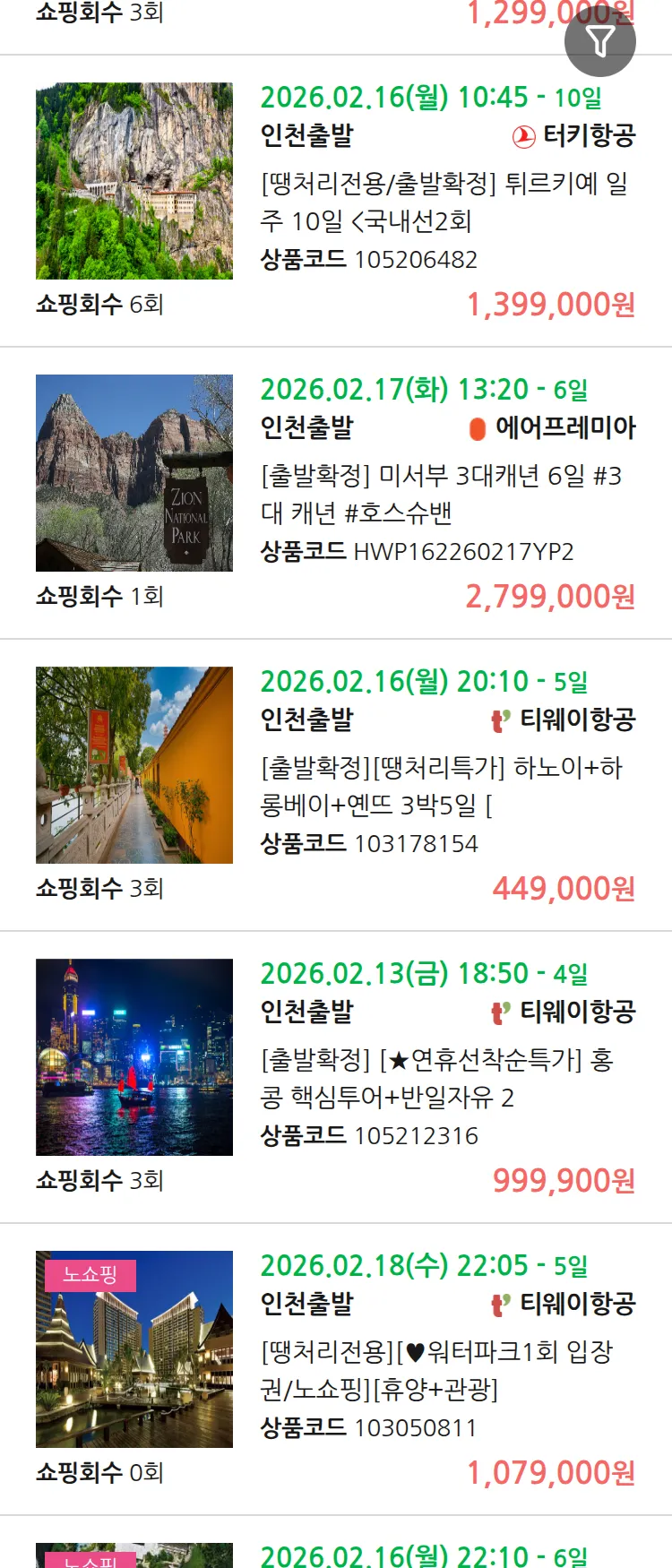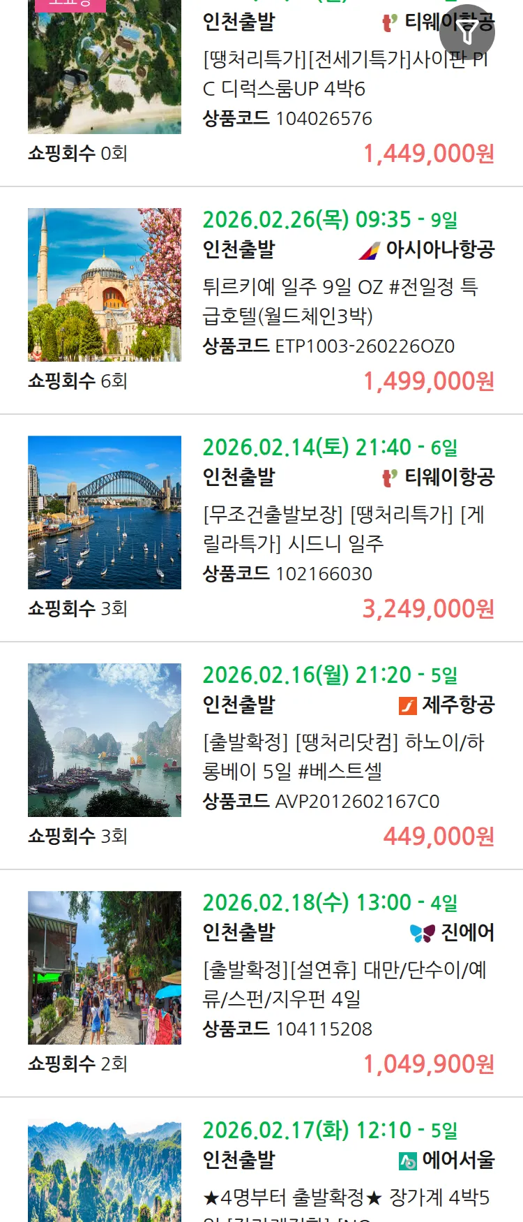(2월6일(금)) 땡처리 99.9% 확정 패키지
