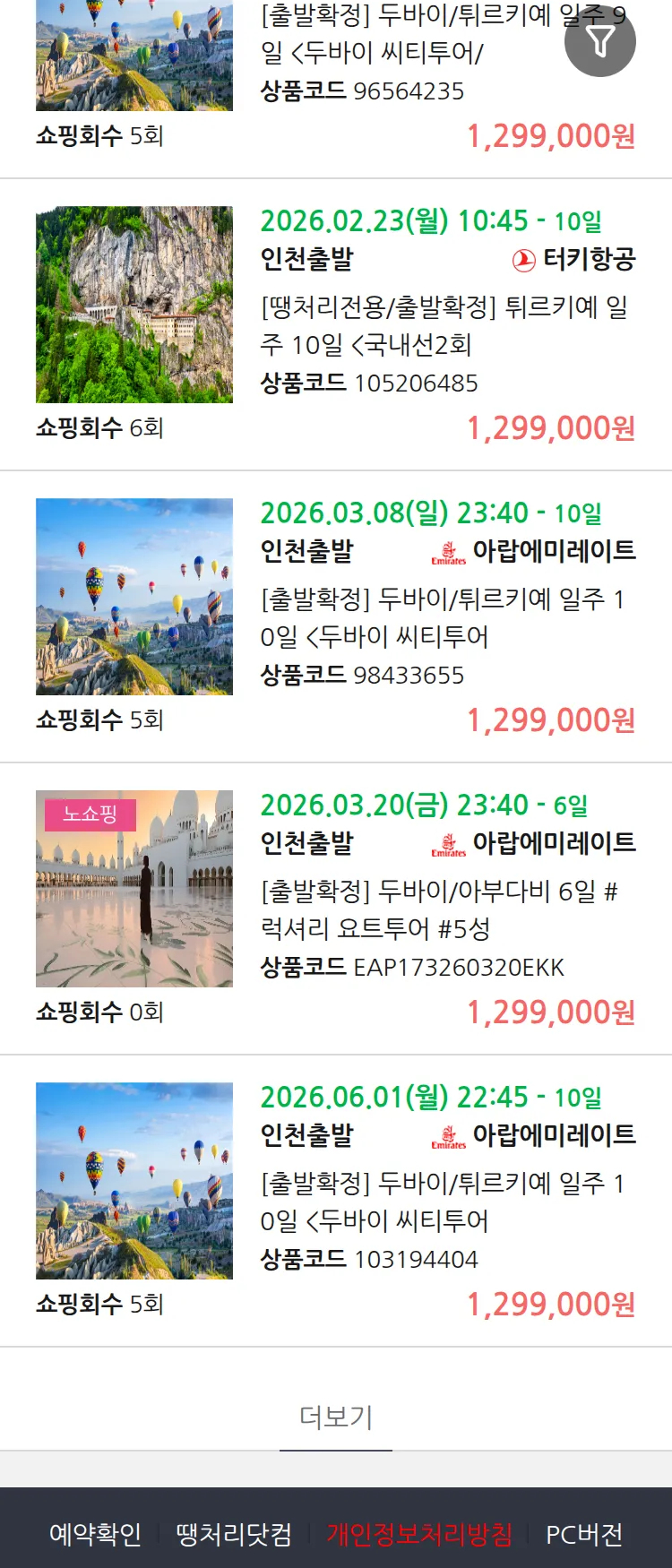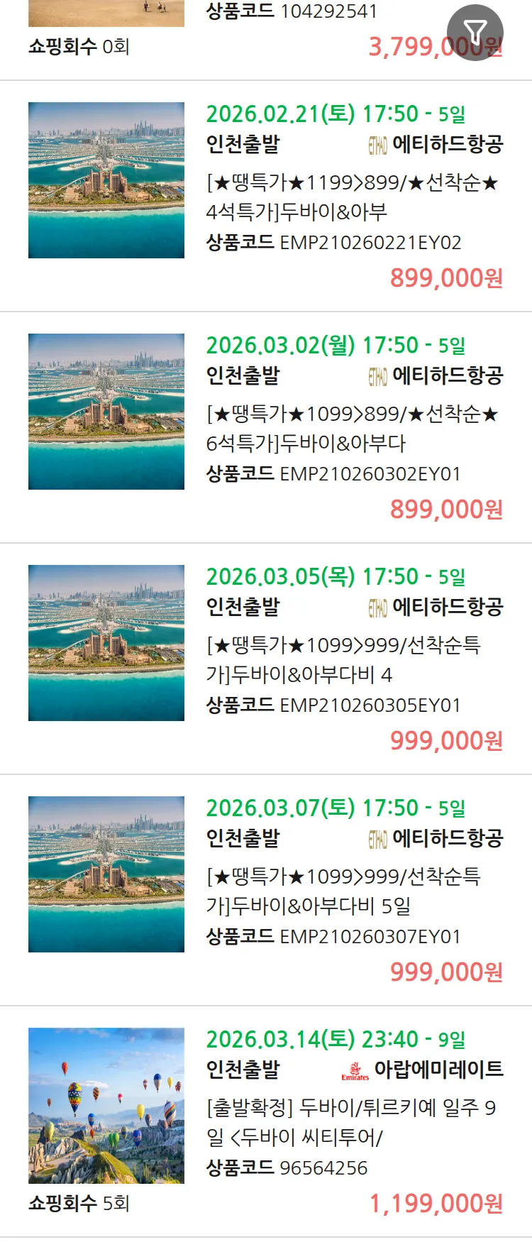 (2월5일(목)) 땡처리 99.9% 확정 패키지
