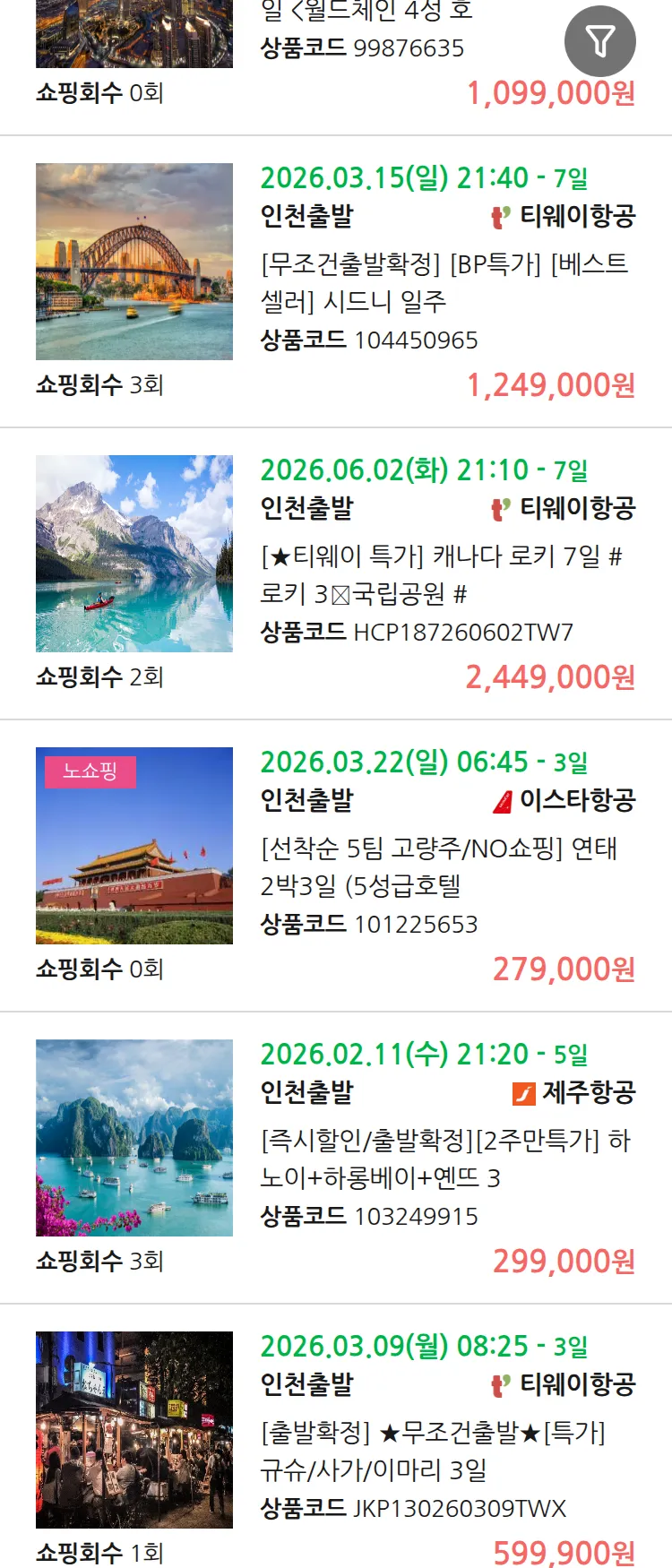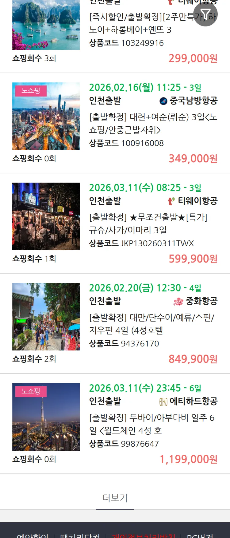 (2월5일(목)) 땡처리 99.9% 확정 패키지