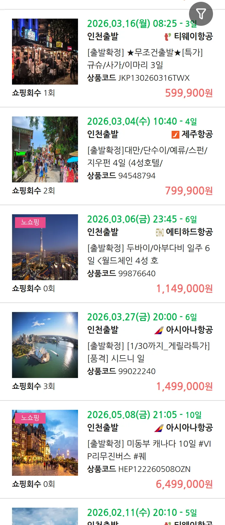(2월6일(금)) 땡처리 99.9% 확정 패키지