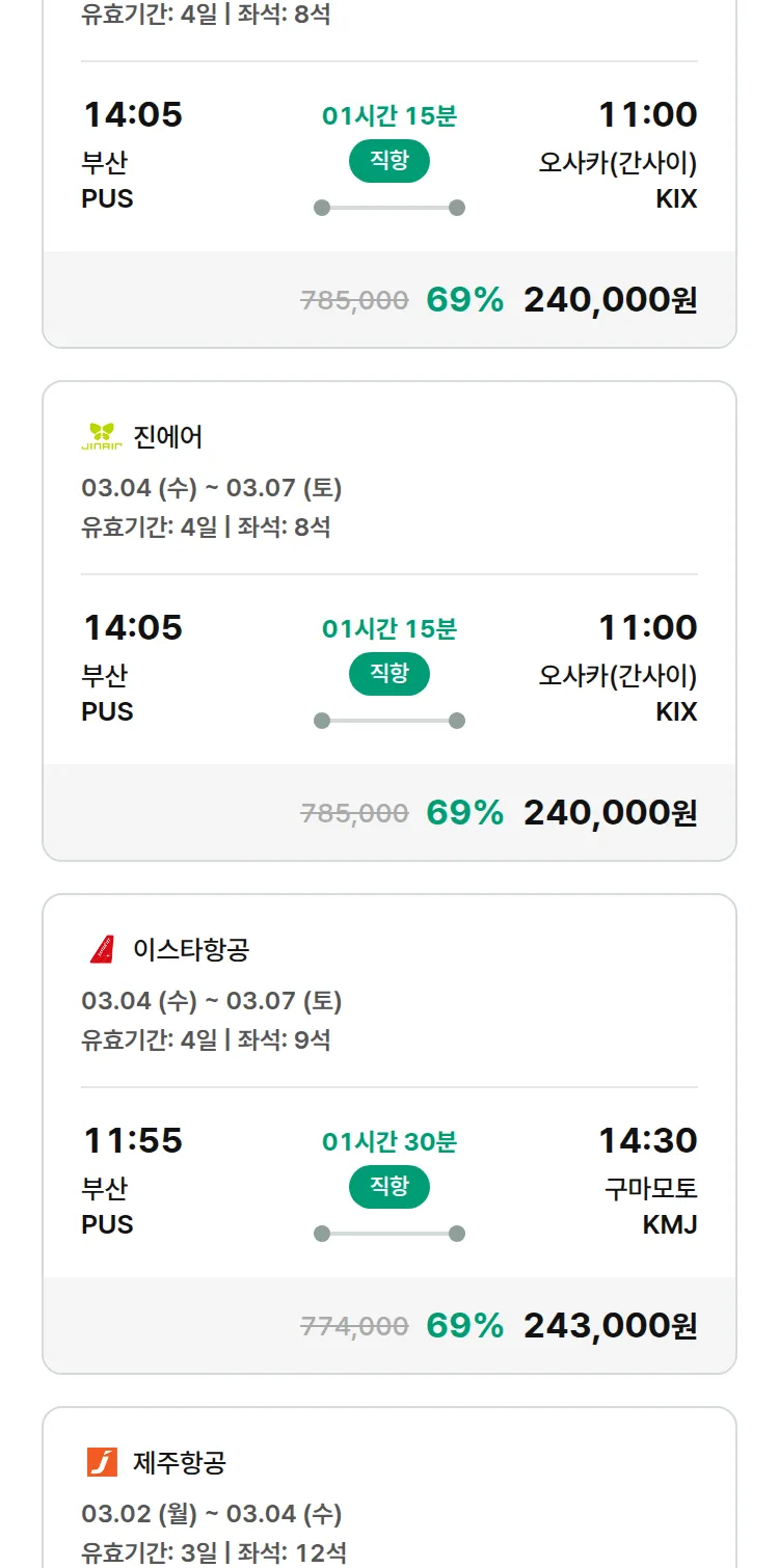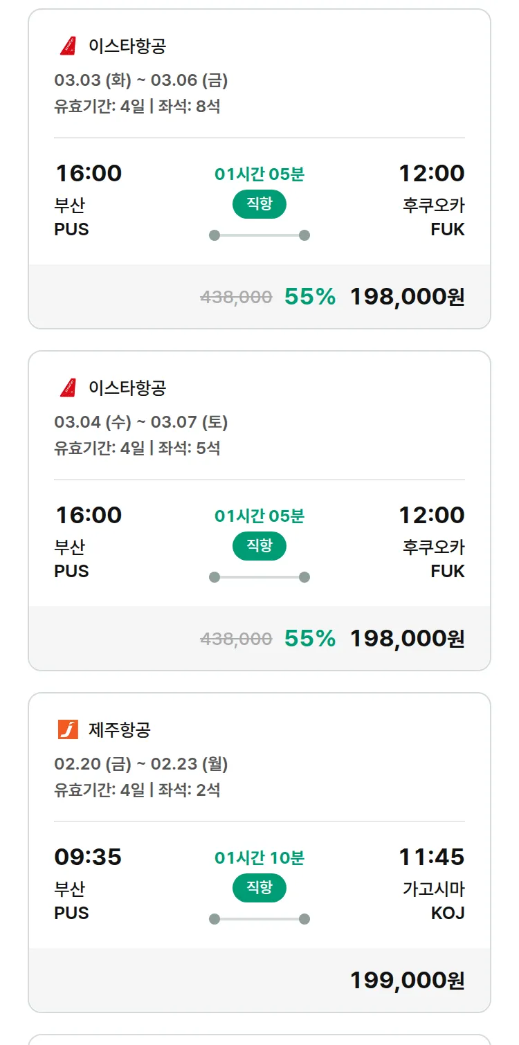 (2월6일(금)) 모두투어 일본 특가 항공권