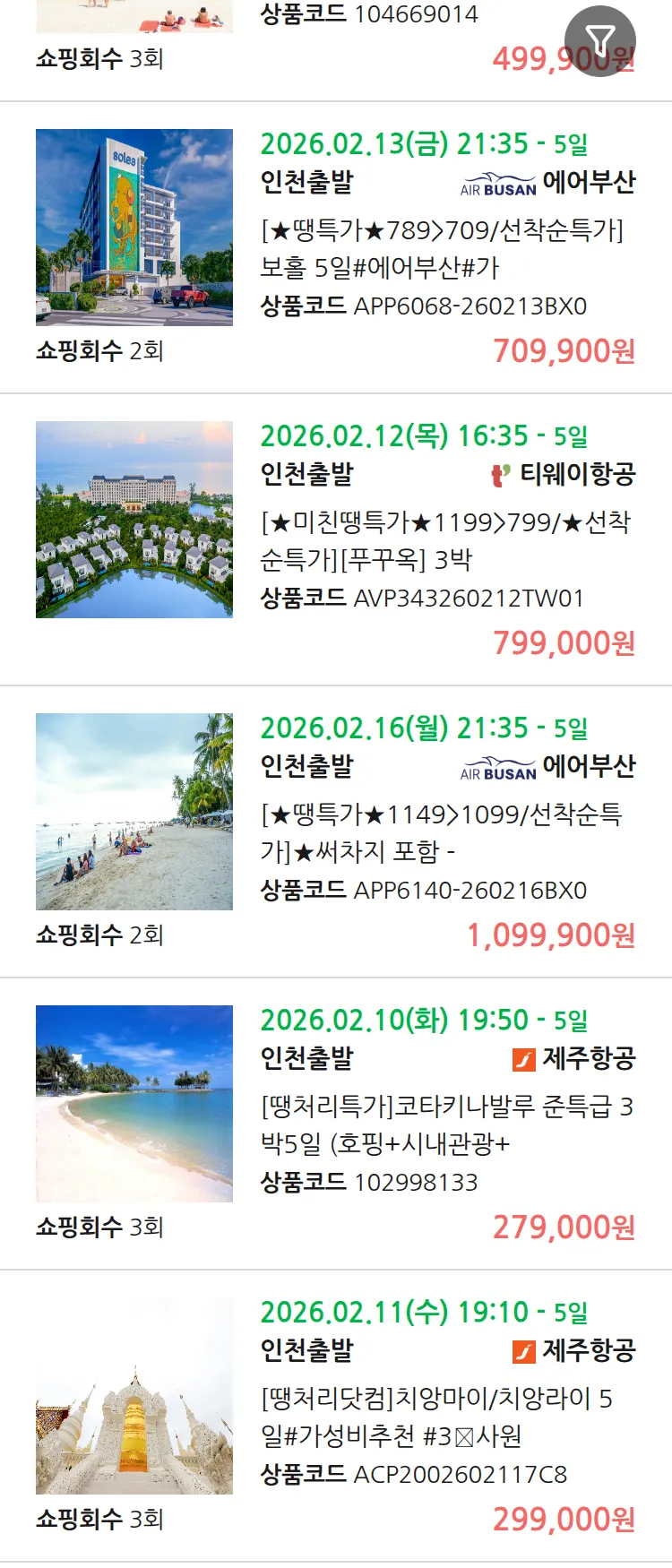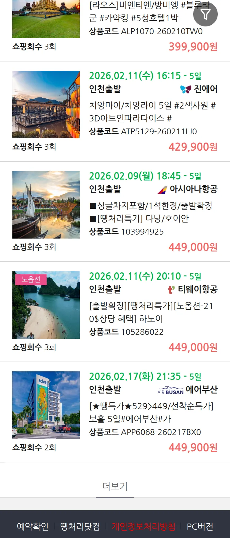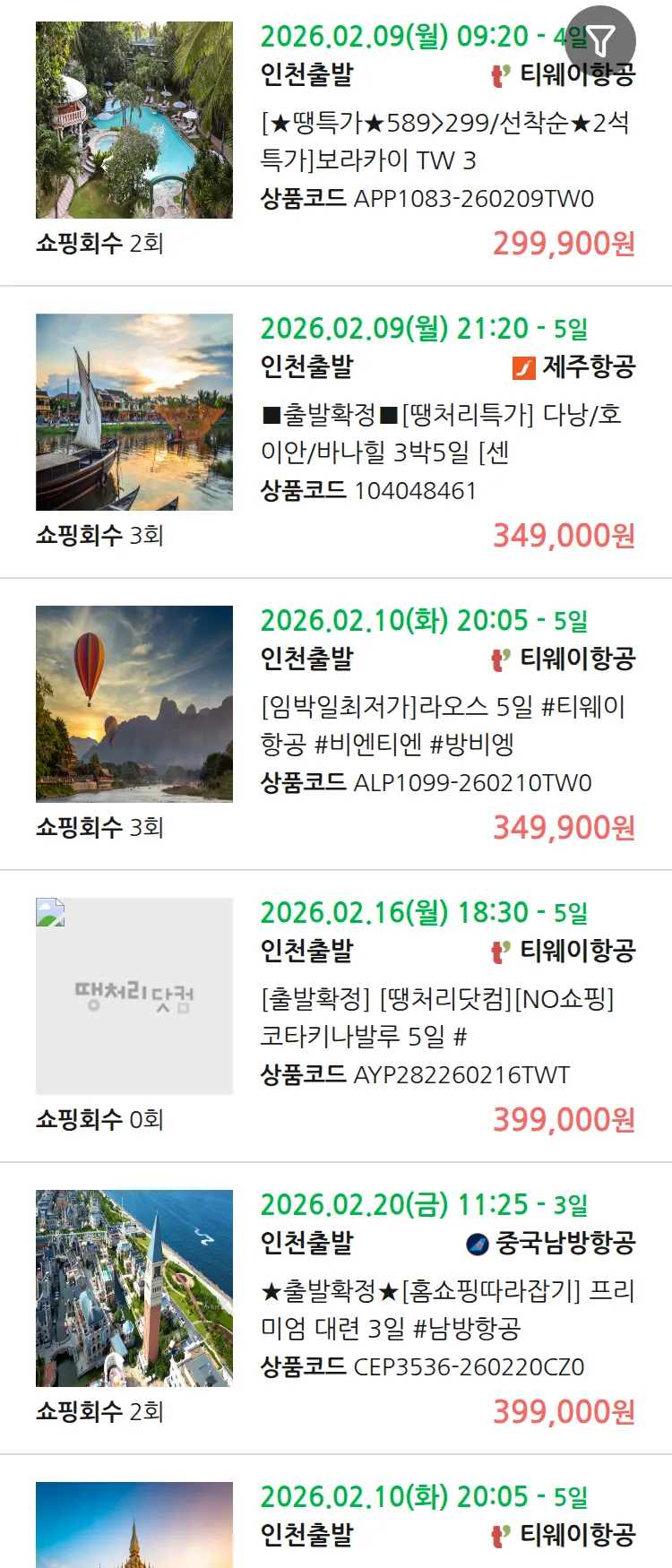 (2월5일(목)) 땡처리 99.9% 확정 패키지