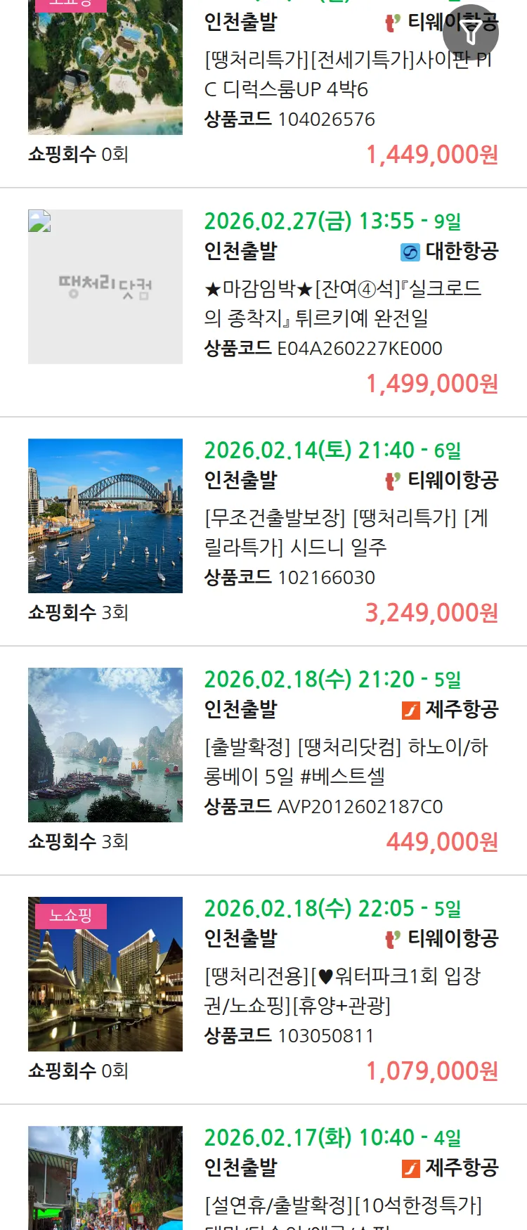 (2월7일(토)) 땡처리 99.9% 확정 패키지