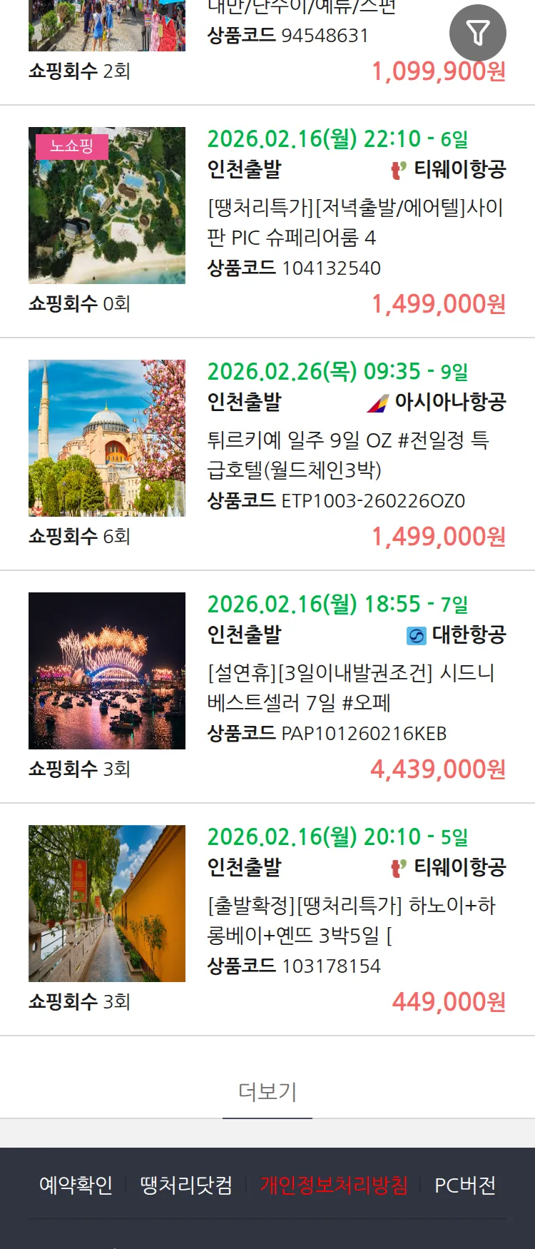 (2월6일(금)) 땡처리 연휴 패키지 패키지